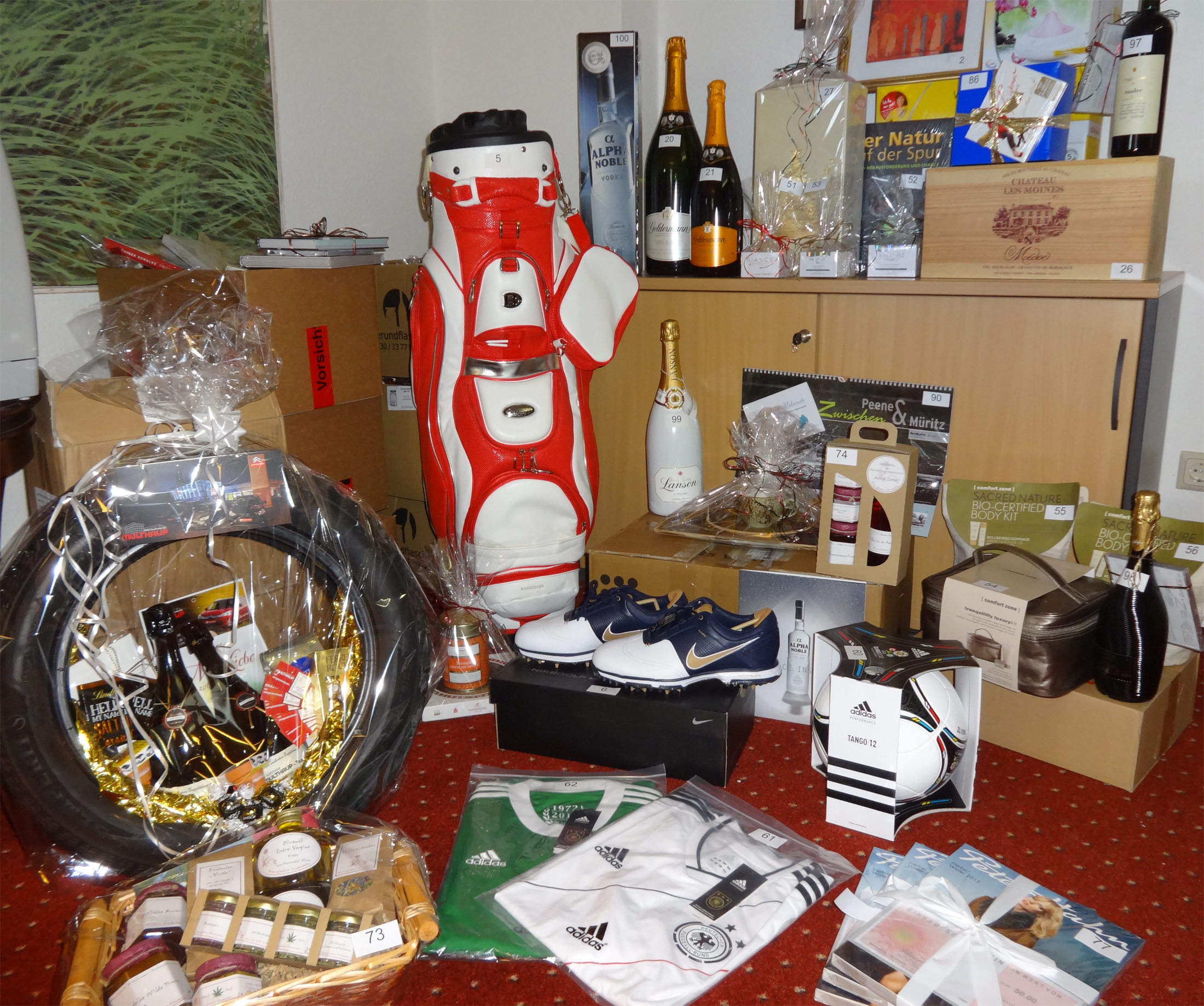 Wir durften schon mal luschen: Hier stehen ein paar Preise, die am Sonnabend beim großen Flanierball im Radisson Blu Resort Schloss Fleesensee bei der Tombola zu gewinnen sind.