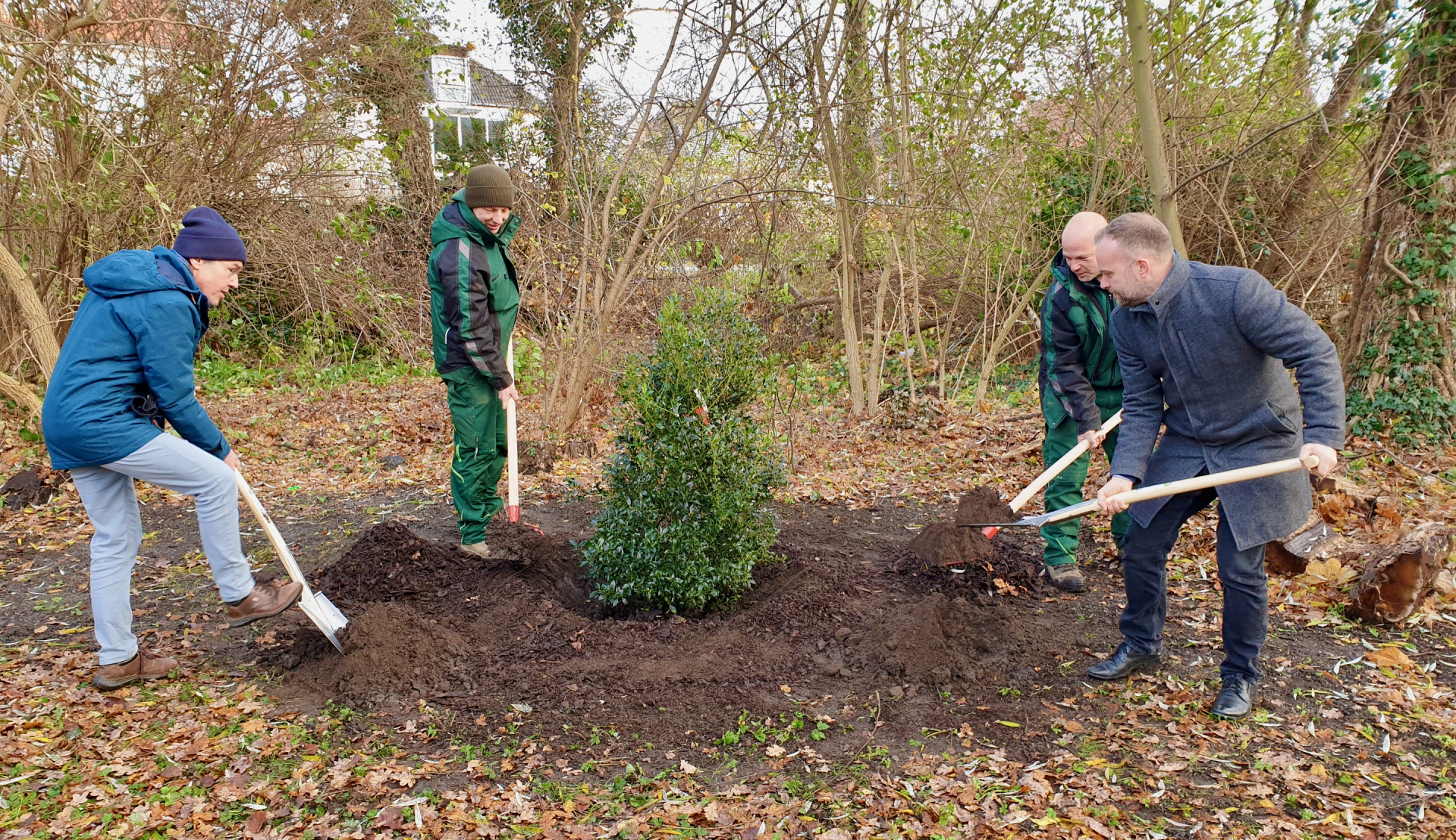 Neubrandenburgs Oberbürgermeister Silvio Witt und die verantwortlichen Mitarbeiter vom Stadtgrün haben jetzt den Baum des Jahres 2021 gepflanzt. In diesem Jahr fiel die Wahl auf die immergrüne Stechpalme (Ilex aquifolium). In der Vier-Tore-Stadt hat der Großstrauch einen Platz am Schwanenteich bekommen.