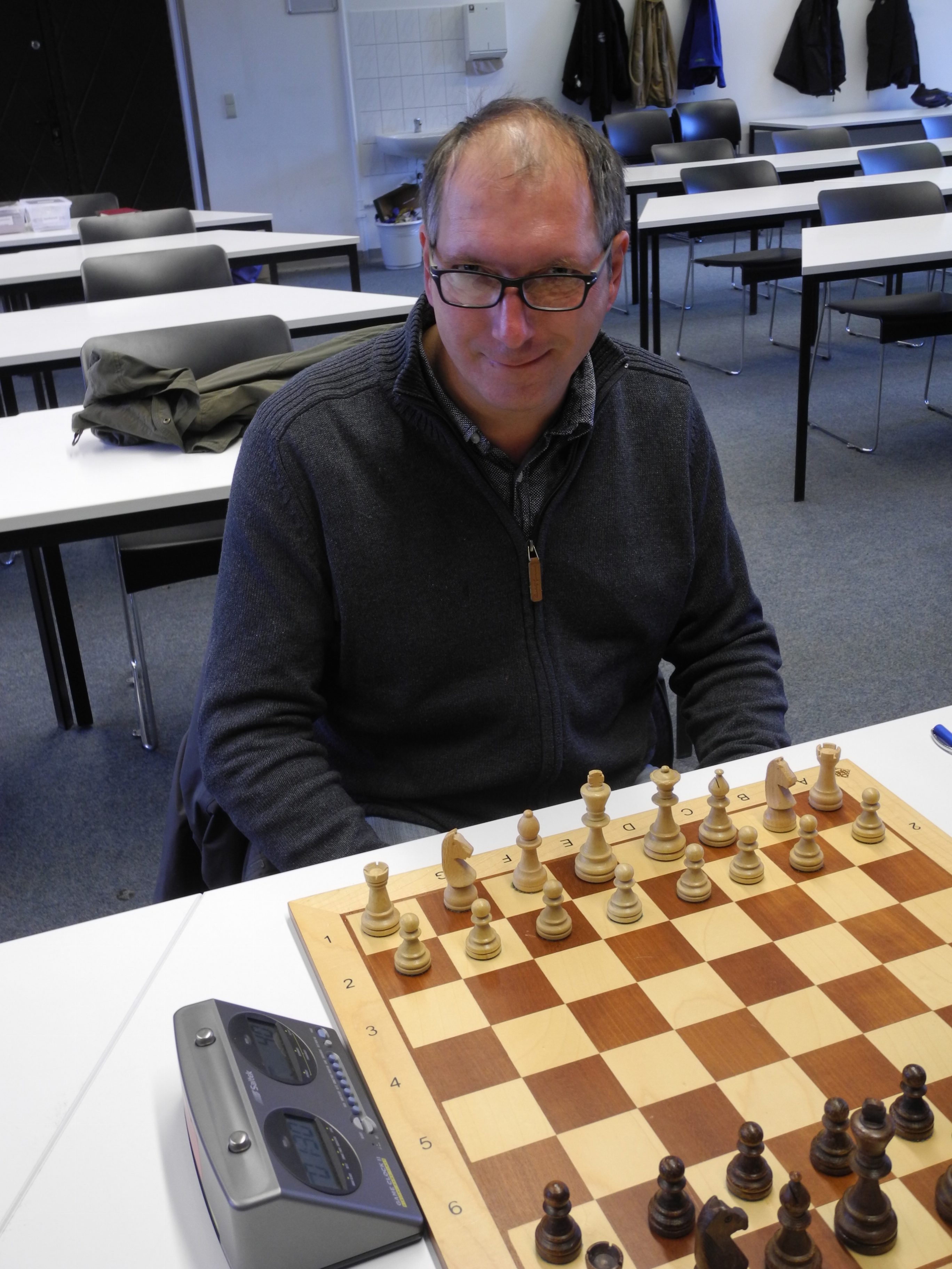 Ganz untypisch war die Partie am Spitzenbrett als erste zu Ende. Michael Stork hatte seinen Gegner schnell überspielt und erzielte die Führung. Nach weiteren Siegen von Frank Hertel-Mach (Foto) und Albrecht Schumacher bei einem Remis von Wolfgang Schreiner und einer Niederlage von Jörg Schmidt vergrößerte sich der Vorsprung für die Gäste noch.
