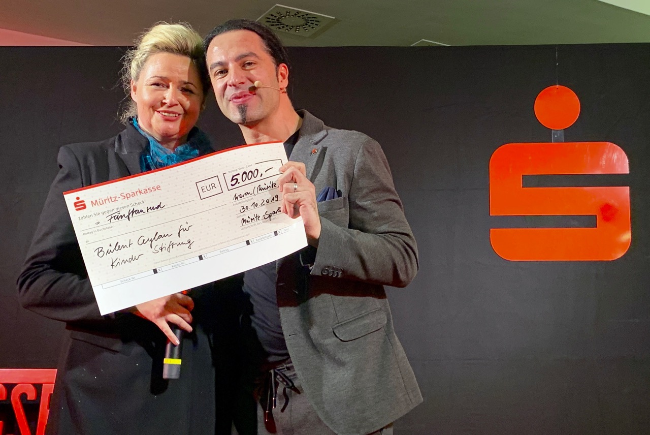 Es passiert leider nur ganz selten, aber es ist schön: Bauchweh – Ursache Lachen. Herzhaftes Lachen. Dieses Symptom hatten am Mittwochabend rund 500 Gäste der Müritz-Sparkasse. Aber nicht etwa, weil sie ihren Kontostand gesehen haben, sondern weil der beliebte Komiker Bülent Ceylan ihre Lachmuskeln reizte. Und zwar alle Lachmuskeln. Die Sparkasse hatte den 43-Jährigen zum 180. Geburtstag eingeladen. Und der brauchte keine zwei Sekunden, um das Publikum auf seine Seite zu ziehen, auch wenn bei ihm alles nur „getürkt“ ist, wie er unumwunden zugab.