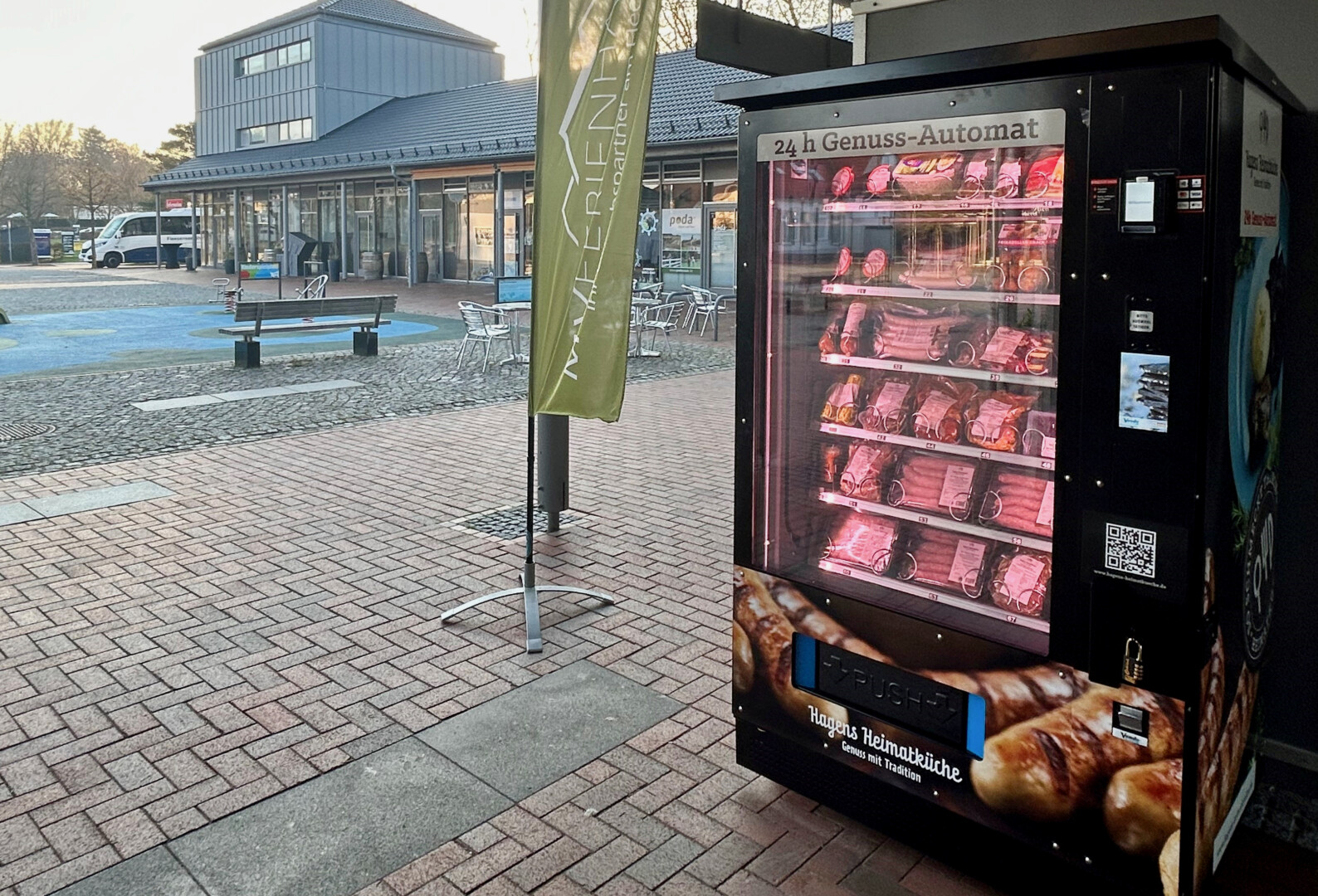 Die Firma Hagens-Heimatküche hat zusammen mit ihrem Partner am Fleesensee – der MV-Ferienhäuser GSAmbH – einen 24-Stunden-Genuss-Automaten aufgestellt. Dem spontanen Grillerchen mit Thüringer Spezialitäten steht damit nichts mehr im Wege. Oder doch lieber zum Sonntag klassisch eine deftige Rinderroulade mit Apfel-Rotkohl und Thüringer Klößen? Für alle Feriengäste und natürlich auch Einheimische ab sofort kein Problem mehr. Ganz entspannt auf den Marktplatz schlendern und bargeldlos shoppen, denn gezahlt wird ganz bequem mit Karte. Der Genuss quasi direkt vor der Haustüre.
