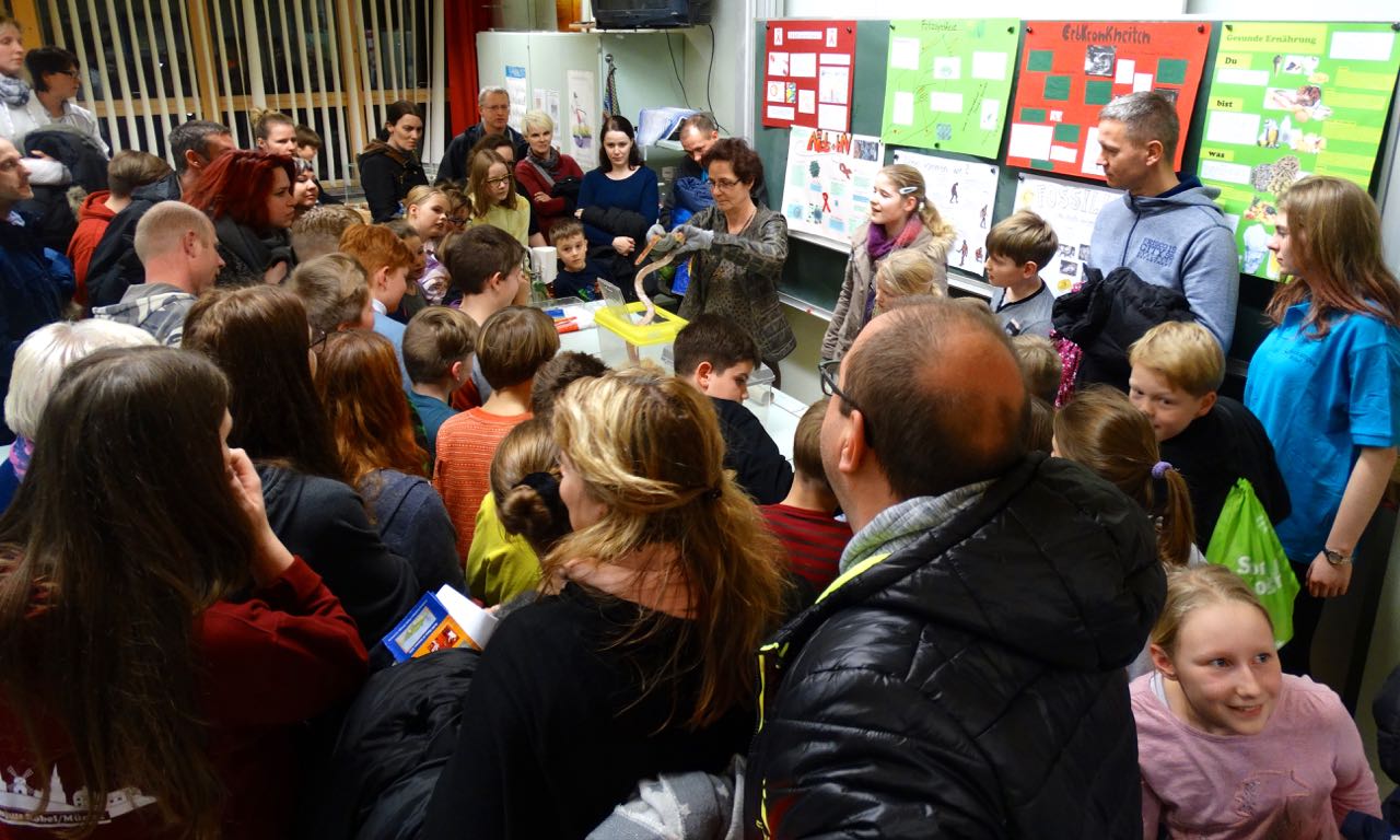 Besonderen Andrang gab es im Biologie-Kabinett, denn dort konnte man Zeuge einer spektakulären Schlangenfütterung werden.