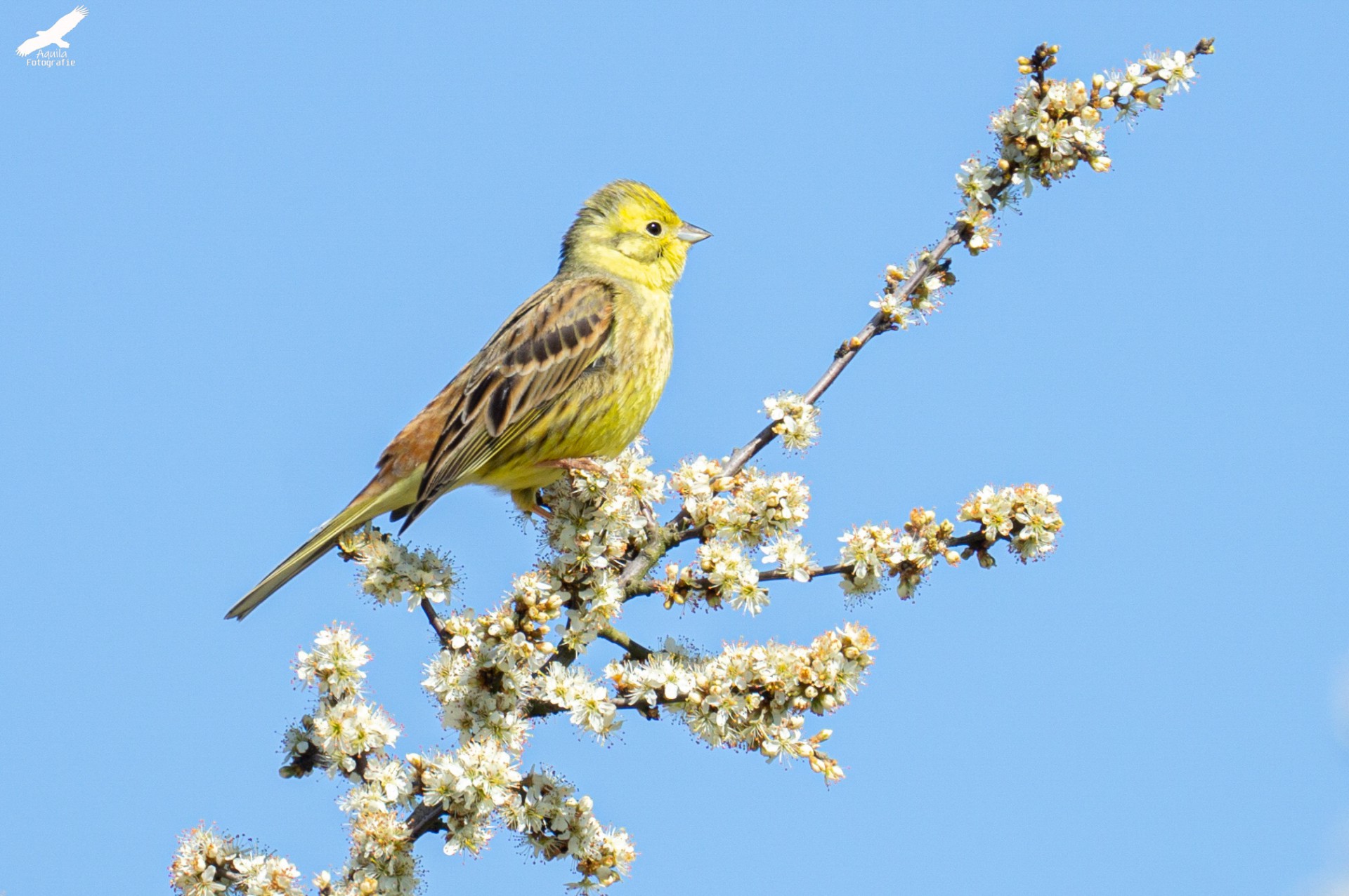 Eine Goldammer genießt den Blütenduft. Ein Bild von Mandy Oppermann