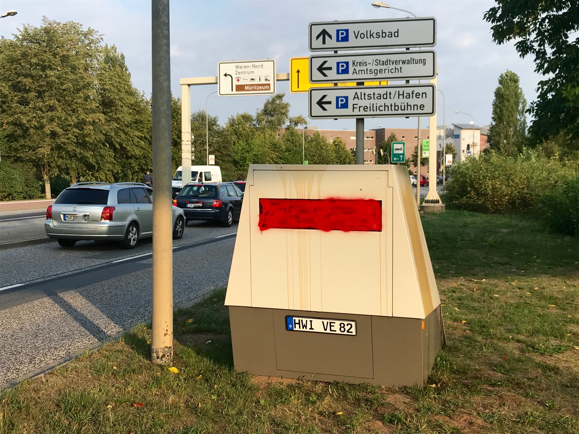 Er hat’s auch nicht leicht, der Blitzeranhänger, den sich der Landkreis Mecklenburgische Seenplatte regelmäßig zur Verstärkung holt: In den vergangenen Tagen ist der Anhänger in Wesenberg zweimal beschmiert worden. Beide Male mit einer weißen, farbähnlichen Substanz im Bereich der Sichtscheibe, so dass ein Betrieb nicht mehr möglich war. Die Kripo Neustrelitz ermittelt wegen des Verdachts der Störung öffentlicher Betriebe sowie wegen des Verdachts der Sachbeschädigung und bittet um Zeugenhinweise.