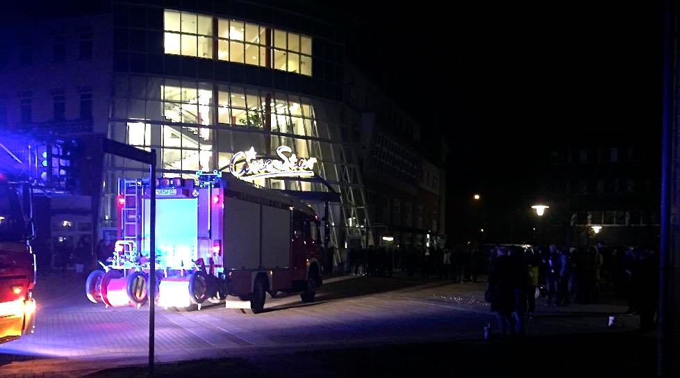 Unfreiwillige Unterbrechung des Abendporgramms im Warener Bürgerhaus: Der Brandmelder des Gebäudes hatte ausgelöst und Warens Feuerwehrleute auf den Plan gerufen. Die Gäste des Hauses waren beim Eintreffen der Wehr bereits vor der Tür.