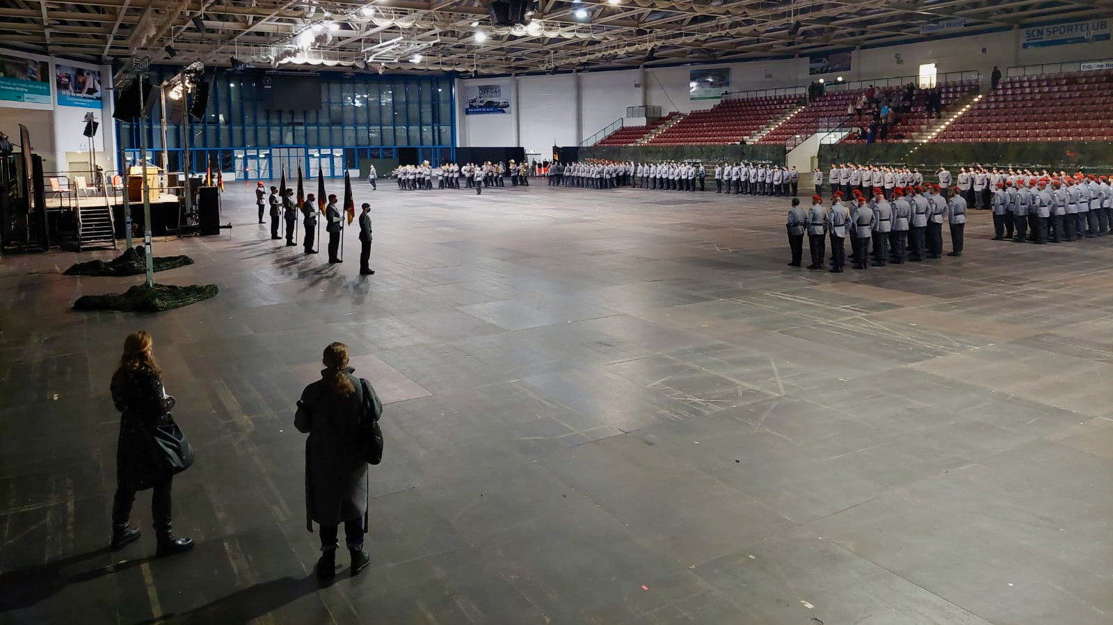 Es ist der Brigade eine Herzensangelegenheit, der Bevölkerung die Umstände der Pandemie zu erleichtern, sagte Nawrat im Neubrandenburger Jahnsportforum. In der riesigen Halle, in der sonst bis zu 5000 Zuschauer bei Konzerten Platz finden, fanden wegen der Beschränkungen nur etwa 240 Soldaten beim Appell zu 30 Jahren ihres Bestehens Platz, darunter das Heeresmusikkorps. Weniger als 100 Zuschauer saßen auf beiden Seiten der Halle. Für alle galt 2Gplus.