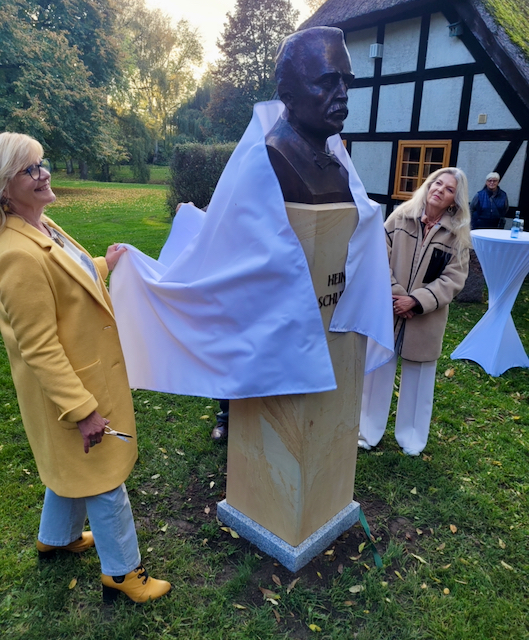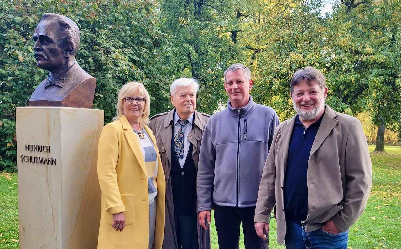 Abschließender und krönender Höhepunkt des Jubiläumsjahres in Ankershagen anlässlich des 200. Geburtstages Heinrich Schliemanns war heute die feierliche Enthüllung einer Bronzebüste des weltbekannten Troja-Ausgräbers. Eine der letzten Arbeiten des 2018 verstorbenen Warener Bildhauers Walther Preik, die nun für das Schliemann-Museum von seinen Söhnen vollendet wurde und mithilfe von Spenden der Jost-Reinhold-Stiftung, Rüdiger Weng, des Landkreises Mecklenburgische Seenplatte, des Rotary-Clubs Waren und der Heinrich-Schliemann-Gesellschaft, realisiert werden konnte. Die Präsentation fand öffentlich und zudem im Rahmen des 12. Internationalen Kolloquiums, veranstaltet von der Heinrich-Schliemann-Gesellschaft e.V., dem Schliemann-Museum Ankershagen und dem Heinrich-Schliemann-Institut der Universität Rostock, statt.