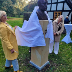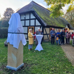 Museumsleiterin Undine Haase führte durch die Veranstaltung. Den Grußworten von Sabine K. Lauffer, Geschäftsführerin der Wirtschaftsförderung Mecklenburgische Seenplatte und der MuSeEn gGmbH, und ihrem ausdrücklichen und herzlichen Dank an alle Spender und die Förderer des Museums in diesem besonderen Jubiläumsjahr, dem Landkreis Mecklenburgische Seenplatte und dem Land Mecklenburg-Vorpommern, folgten die Ausführungen von Dr. Wilfried Bölke zur Entstehungsgeschichte der Büste.