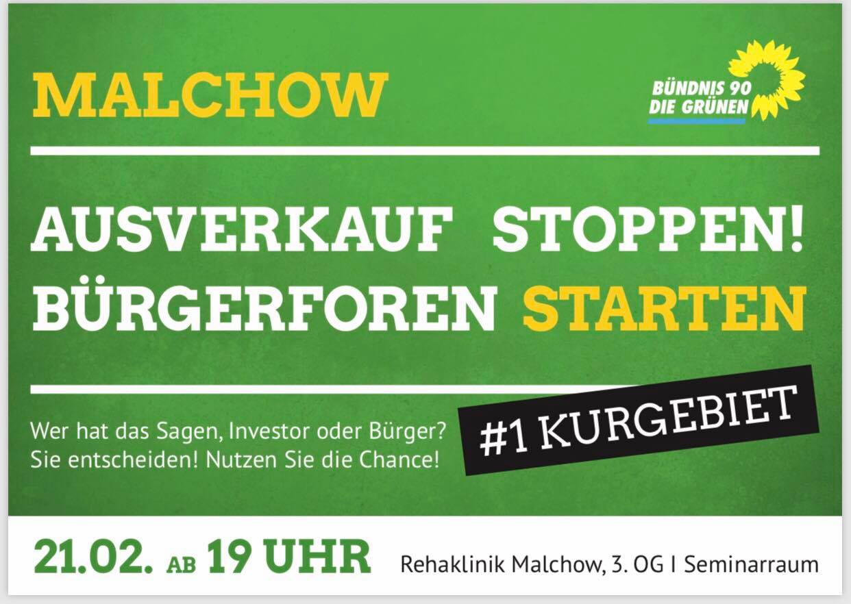 Der Ortsverband Malchow von Bündnis 90/Die Grünen lädt am morgigen Donnerstag, 21. Februar, zum ersten Bürgerforum ein.