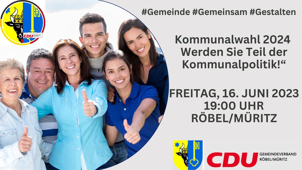 Kommunalpolitik ist eine Möglichkeit, um vor Ort mitzubestimmen. In Mecklenburg-Vorpommern stehen im kommenden Jahr wieder Kommunalwahlen an. Die CDU Röbel will den inhaltlichen und organisatorischen Auftakt zur Kommunalwahl im Juni 2024 setzen. Unter dem Motto „Kommunalwahl 2024 – Werden Sie Teil der Kommunalpolitik!“ sind Interessierte am kommenden Freitag ab 19 Uhr auf den Reitplatz des Ponysportvereins am Gotthunskamp (hinter der Feuerwehr) eingeladen. Als Gast wird der Mitgliederbeauftragte des CDU-Landesverbandes Dr. Stephan Bunge erwartet. Außerdem gibt es auch Gelegenheit, über Bundes, Landes- und Kommunalpolitik zu „klönen.“ Der Ortsverein kümmert sich um Grillgut und Getränke, Salate können gerne mitgebracht werden.