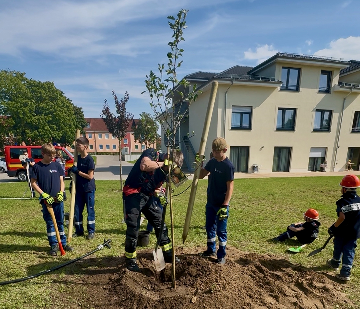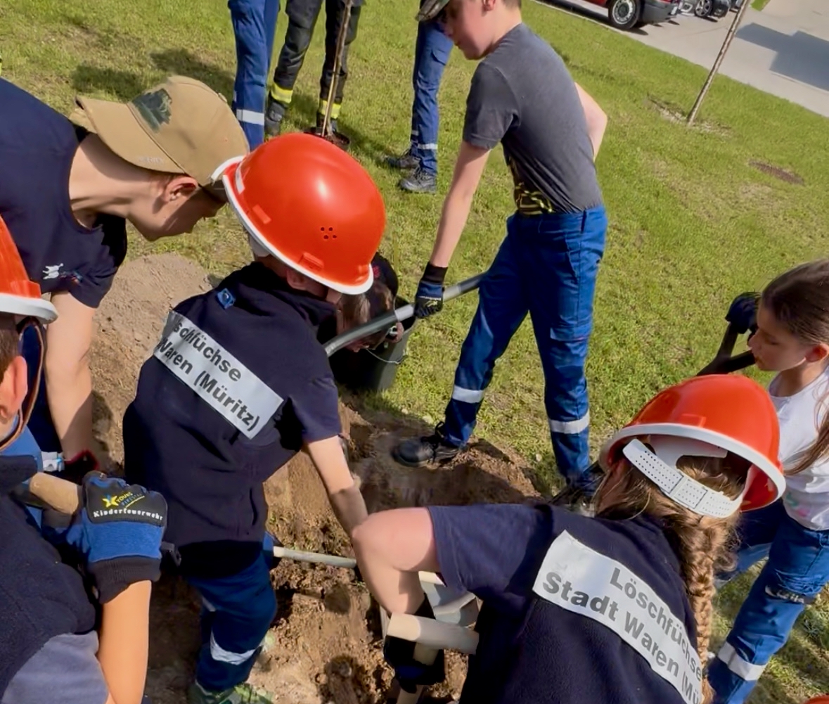 Das ist doch mal eine sinnvolle Aktion: Die Apfelbaum-Challenge verbreitet sich derzeit rasant – auch unter den Jugendfeuerwehren des Landkreises Mecklenburgische Seenplatte, in Mecklenburg-Vorpommern und im gesamten Bundesgebiet. Die Herausforderung: „Pflanzt innerhalb einer Woche einen Apfelbaum oder ihr müsst uns zum Grillen einladen.“ Die Jugendfeuerwehr Beseritz hat die Jugendabteilung der Freiwilligen Feuerwehr Waren (Müritz) herausgefordert. Die Warener Nachwuchsretter haben die Challenge angenommen. So trafen sich Mitglieder der Jugendfeuerwehr und der Löschfüchse vor wenigen Tagen, um einen Apfelbaum zu pflanzen. Ein besonderer Platz war schnell gefunden. Auf dem Gelände der DRK-Pflegeeinrichtung “Müritzpark“ mit Hospiz pflanzten die Mädchen und Jungen der Warener Feuerwehr ihren Apfelbaum und hoffen, dass dieser den Bewohnern in einigen Jahren viele leckere Äpfel beschert. Challenge gewonnen! Und weiter nominiert wurden die Jugendfeuerwehren Marihn, Klink und die Warener Partnerfeuerwehr Altenhagen I aus Springe.