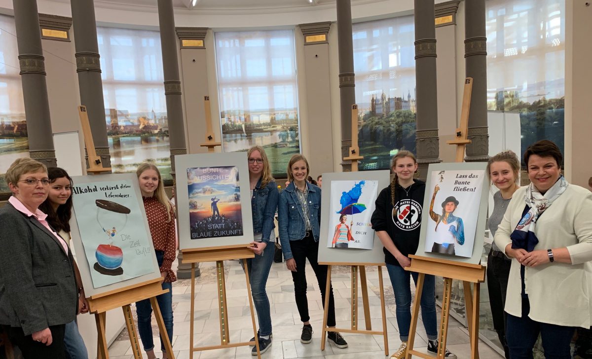 „bunt statt blau“: Unter diesem Motto beteiligten sich im Frühjahr bundesweit fast 9.000 Schüler am Plakatwettbewerb der DAK-Gesundheit gegen das sogenannte Komasaufen bei Jugendlichen. In Mecklenburg-Vorpommern kommt das beste Plakat für die Präventionskampagne der Krankenkasse von der 15-jährigen Merle Nethe aus Putbus. Sie setzte sich gegen rund 200 Teilnehmer durch und wurde zusammen mit den anderen Landessiegern in Schwerin geehrt. Die Sozialministerin Stefanie Drese übergab als Schirmherrin der Aktion in MV die Preise und Urkunden.