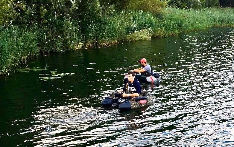 Angler sind wirklich erfinderisch. Wie diese beiden Urlauber aus Münster beweisen. Sie tragen Flossen und Watthosen, haben aber sozusagen ein „Ein-Mann-Boot“ dabei, damit sie nicht die ganze Zeit stehen müssen. Und sie können so natürlich Stellen „anfahren“, die sonst unzugänglich sind.