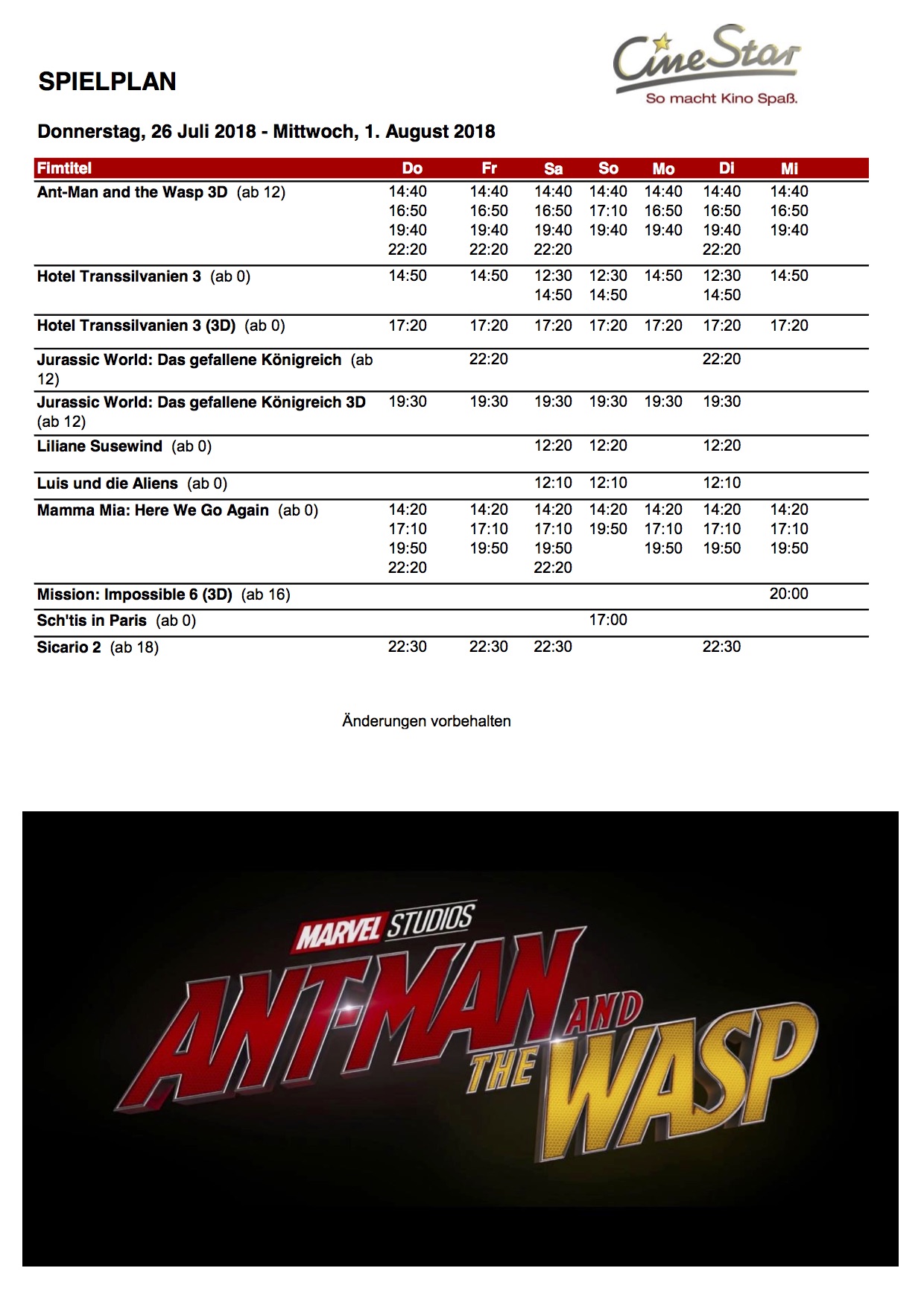 Das ab heute gültige Kinoprogramm für das CineStar Waren mit den Sondervorstellungen: