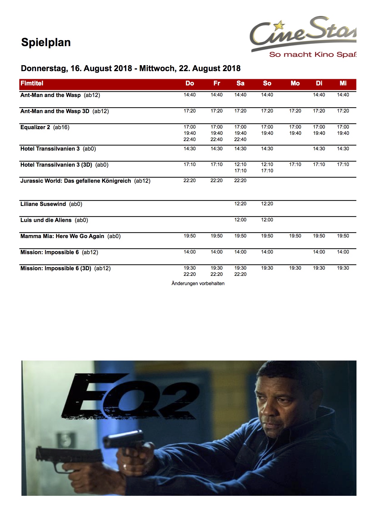 Das aktuelle Kinoprogramm des CineStar Waren ab morgen:
