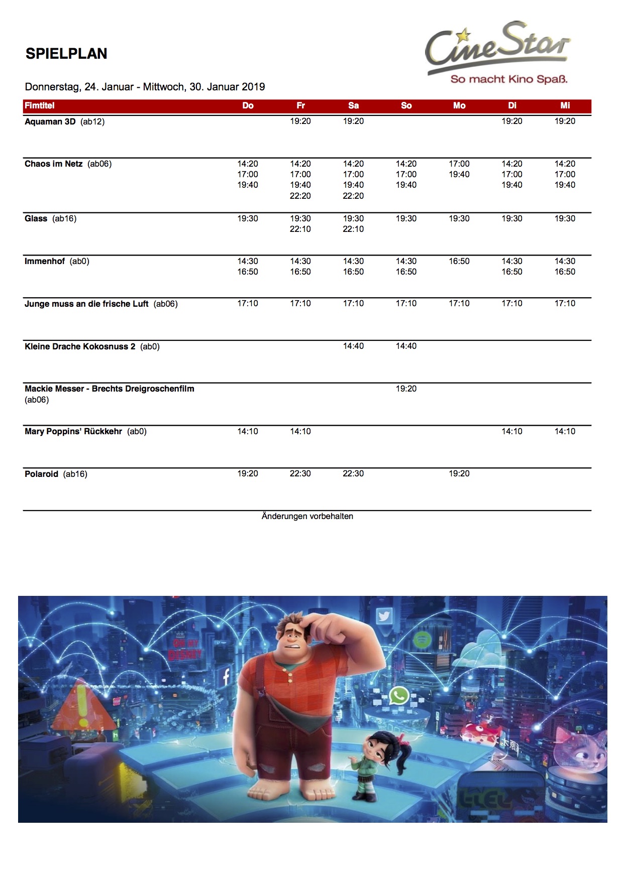 Das aktuelle Kinoprogramm für das CineStar Waren mit