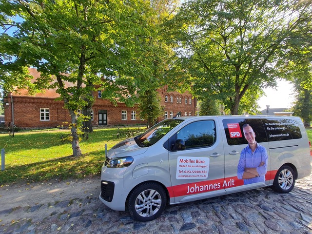 Der Bus des SPD-Bundestagsabgeordneten Johannes Arlt ist wieder in der Müritz-Region unterwegs. Für Bürgersprechstunden steht er am Mittwochmittag, 12. Oktober, von 12 bis 14 Uhr in Nossentiner Hütte auf dem Parkplatz in der Dorfstraße auf Höhe von Haus-Nr. 22. Die Beachflag wird an der Einfahrt aufgestellt, so dass Vorbeifahrende anhalten können, um ihre Anliegen an den Bundestagsabgeordneten vorzubringen. Nächste Station ist Malchow. Am Mittwochnachmittag parkt das mobile Büro von Johannes Arlt von 15 bis 17 Uhr auf dem Stadt-Parkplatz an der Friedrich-Ebert-Straße. Wer auf einen Kaffee vorbeischauen mag, ist herzlich willkommen.