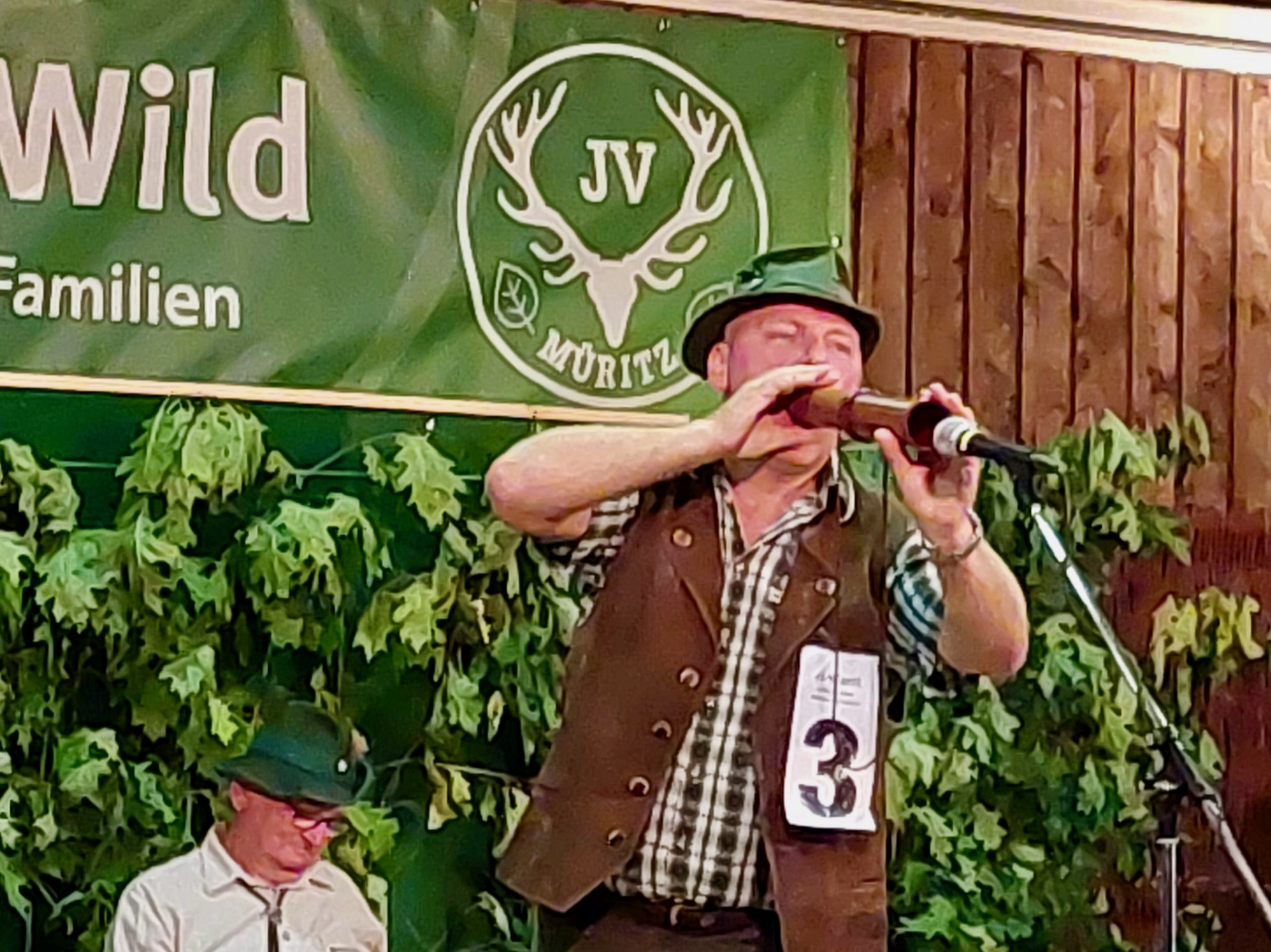 So musste der dritte Ruf entscheiden. Dabei mussten die Teilnehmer zwei miteinander konkurrierende Hirschmännchen imitieren. Das erwies sich als Königsdisziplin für den alteingesessenen Wittstocker Braun. Er röhrte in ein verschiebbares Rohr und ein Horn, dass es nur so schallte. Und bekam dafür auch die einzigen Sechsen, also die höchste Wertung überhaupt.
