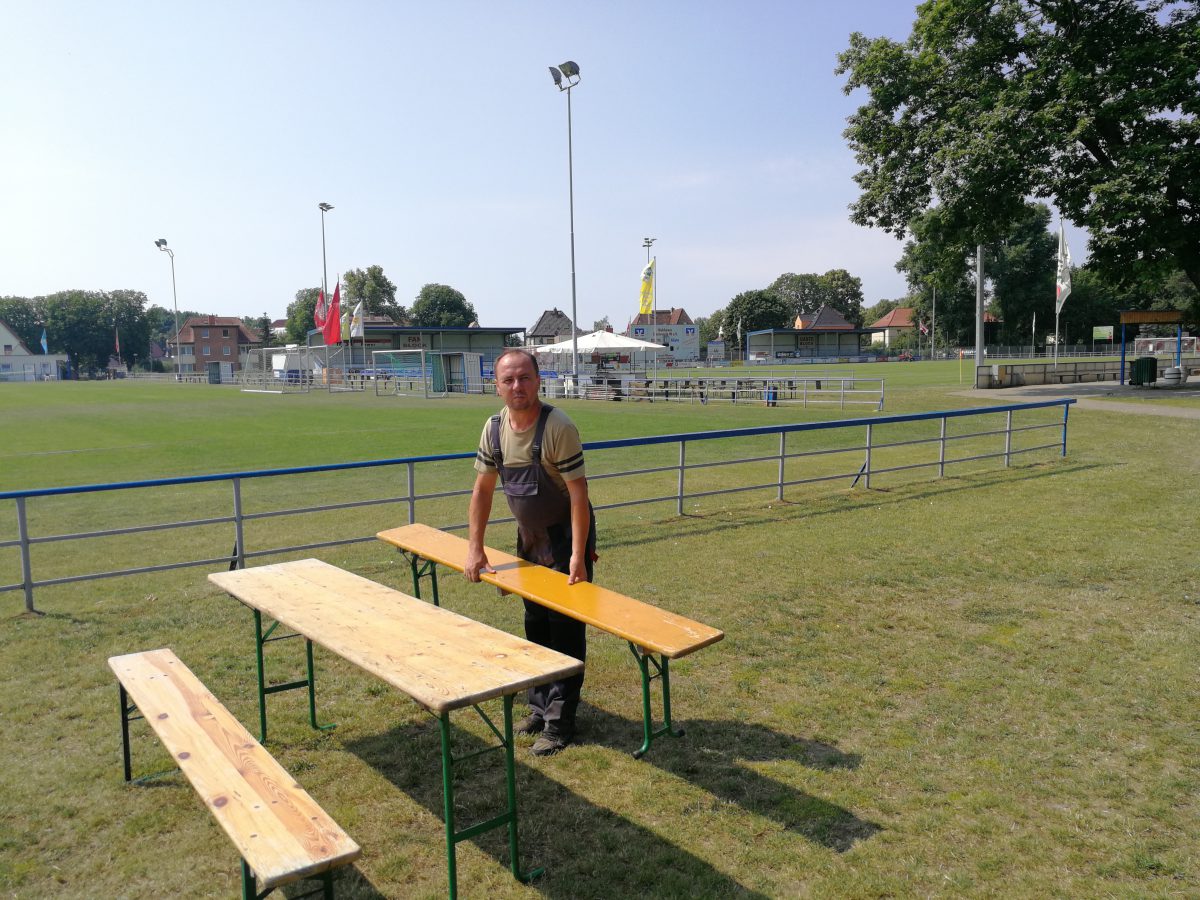 Im Malchower Waldstadion laufen gerade die letzte Vorbereitungen für den heutigen Fußballknaller Malchower SV 90 gegen den FC Hansa Rostock, der um 18.30 Uhr angepfiffen wird. Karten gibt es noch an den drei Kassen am Stadion.
