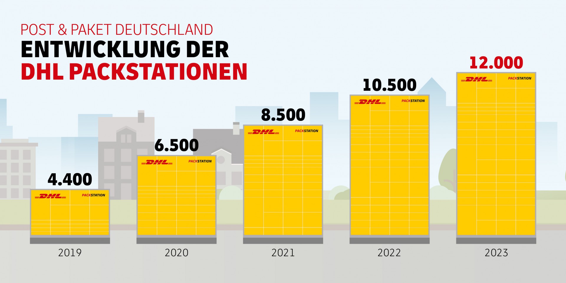 Den Packstationsservice hat DHL bereits 2003 als erstes Unternehmen im deutschen Markt eingeführt. Die Zahl der Automaten ist insbesondere in den letzten Jahren stark gestiegen: Waren Ende 2014 erst 2.800 Packstationen bundesweit installiert, waren es Ende 2019 etwa 4.400 Automaten. Ende dieses Jahr werden es bereits 6.500 DHL Packstationen sein – ein Zuwachs von fast 50 Prozent gegenüber dem Vorjahr. Besonders beliebt ist die Packstation dadurch, dass sie leicht zu bedienen und rund um die Uhr für den Versand und Empfang von Paketen verfügbar ist. Zudem befindet sie sich oftmals an zentralen Orten des täglichen Lebens, sodass Kunden den Paketempfang und -versand bequem zum Beispiel mit dem Weg zur Arbeit oder dem Lebensmitteleinkauf verbinden können.