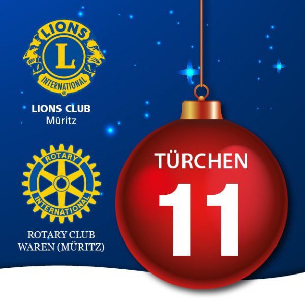 Hinter dem Türchen Nummer 11 der Weihnachtslotterie des Lions-Clubs Müritz und des Rotary Clubs Waren warten heute fünf Preise. Unter anderem Gutscheine, Bargeld und ein Sektfrühstück für vier Personen.
