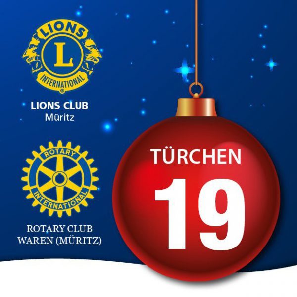 Hinter dem Türchen Nummer 19 der Weihnachtslotterie des Lions-Clubs Müritz und des Rotary Clubs Waren warten heute sechs Preise. Unter anderem Bargeld und eine Tiki-Boat-Tour für bis zu 12 Personen. Und noch ein wichtiger Hinweis: Ein heutiger Gewinn ist beinhaltet zwei Übernachtungen im Gutshof Woldzegarten. Diesen Preis gab es auch schon am 5. Dezember. Doch der Gutshof Woldzegarten hat seine Türen bekanntlich geschlossen. Deshalb gibt es diese beiden Gewinne jetzt als Bargeld, das ebenfalls bei möbelkallies abgeholt werden kann. Das betrifft die Losnummern 8225 und 7912.