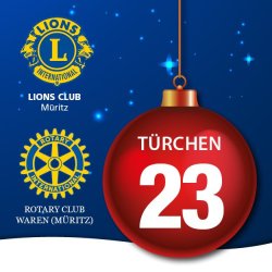 Hinter dem Türchen Nummer 23 der Weihnachtslotterie des Lions-Clubs Müritz und des Rotary Clubs Waren warten heute acht Preise. Unter anderem Restaurantgutscheine, Gutscheine für leckere Schokolade aus der Manufaktur und Bargeld.