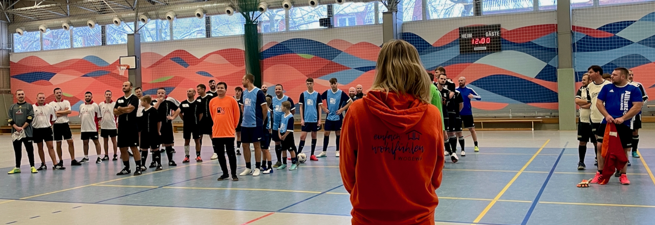 So sehen Sieger aus, nämlich die des zehnten Wogewa-Cups: Sechs Mannschaften konnte Geschäftsführerin Kristin Görlach in der Engels-Halle begrüßen. Und schon kurze Zeit später rollte der Ball in der ersten Partie. Auch wenn jedes Spiel nur zwölf Minuten dauerte, wurde es für die jeweils fünf Spieler pro Mannschaft schnell zu einer sportlichen Herausforderung. Zwischen Spiel und Spaß mischte sich der sportliche Ehrgeiz, denn immerhin ging es um den 1. Wanderpokal.