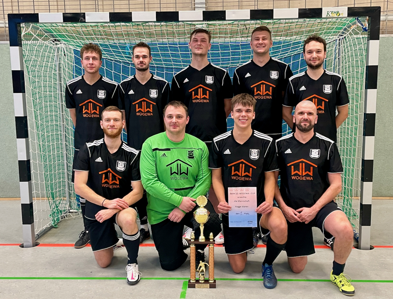 Am Ende eines durchweg fairen Spieltages konnten die Spieler der „Kogge Waren“ die Trophäe in den Hallenhimmel stemmen. Zum besten Torschützen des Turniers wurde Jan-Ole Thurow gekürt. Den Pokal für den besten Torwart entschied Thomas Genz für sich.