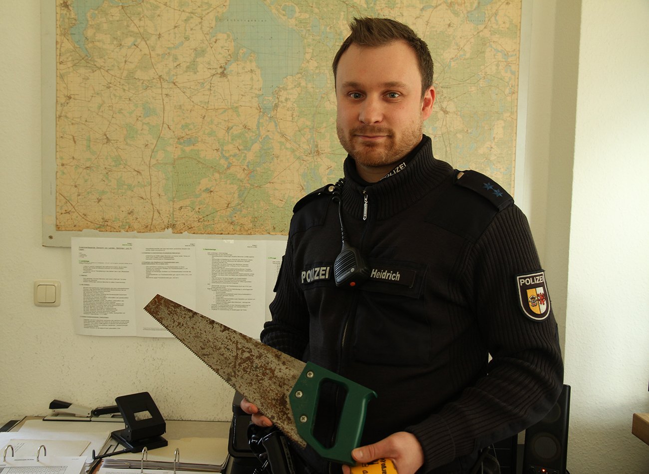 Mit Klebeband und Mülltüten gelang es den Beamten, unter widrigen Umständen, das Loch in der Beifahrerseite zu schließen. Nach rund zwei Stunden war der Einsatz wieder beendet und Conny Pape überglücklich. „Ich möchte die beiden Beamten einfach nur ganz fest umarmen und mich bedanken. Niemals hätte ich mit so viel Herz und Hilfe gerechnet“, sagte Conny Pape. Auch Christiana Morawitz und Jan Heidrich werden diesen Einsatz nicht so schnell vergessen. „Frau Pape hat sich tausendmal bedankt. Wir wussten ja gar nicht, was wir sonst hätten machen sollen“, sagte Morawitz. „Wir sind froh, dass wir helfen konnten. Frau Pape konnte dann in eine Scania Werkstatt fahren, ohne stundenlang frieren zu müssen“, sagte Heidrich.