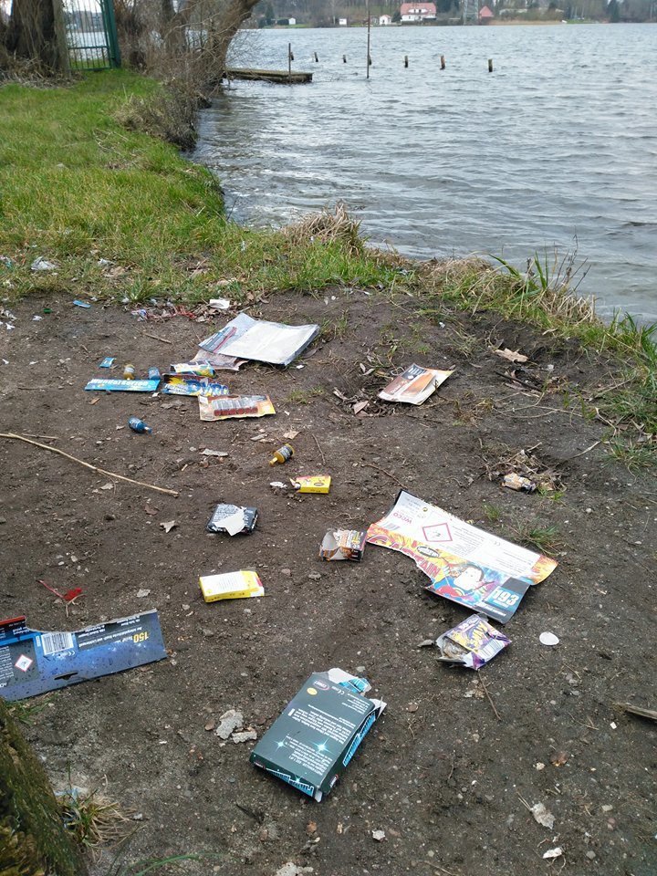 Wenn man es schon nicht bis Silvester abwarten kann, sollte man doch wenigstens seinen Unrat selber beseitigen.