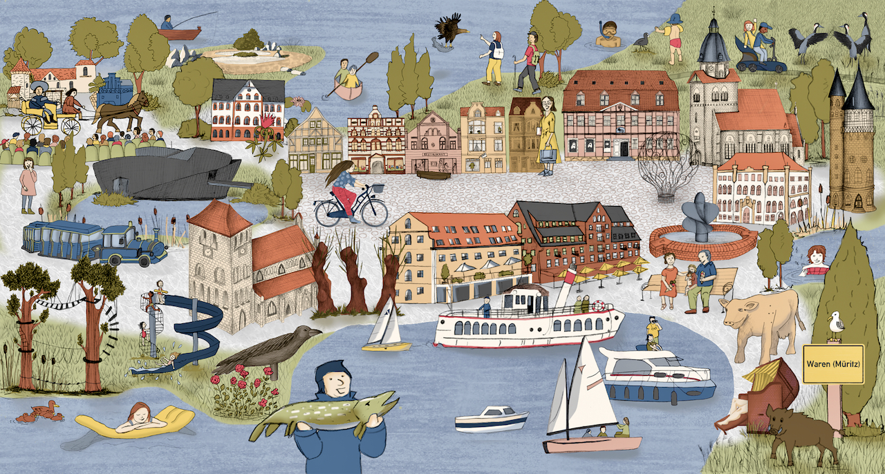 „Bianka hatte, wie auch ich, Visionen von einem Projekt mit Bezug auf unser geliebtes Städtchen. So kam es, dass aus Ideen, Skizzen und Spinnereien ein echtes Projekt entstand: die Wimmelpostkarte von Waren“, erzählt die 30-Jährige.