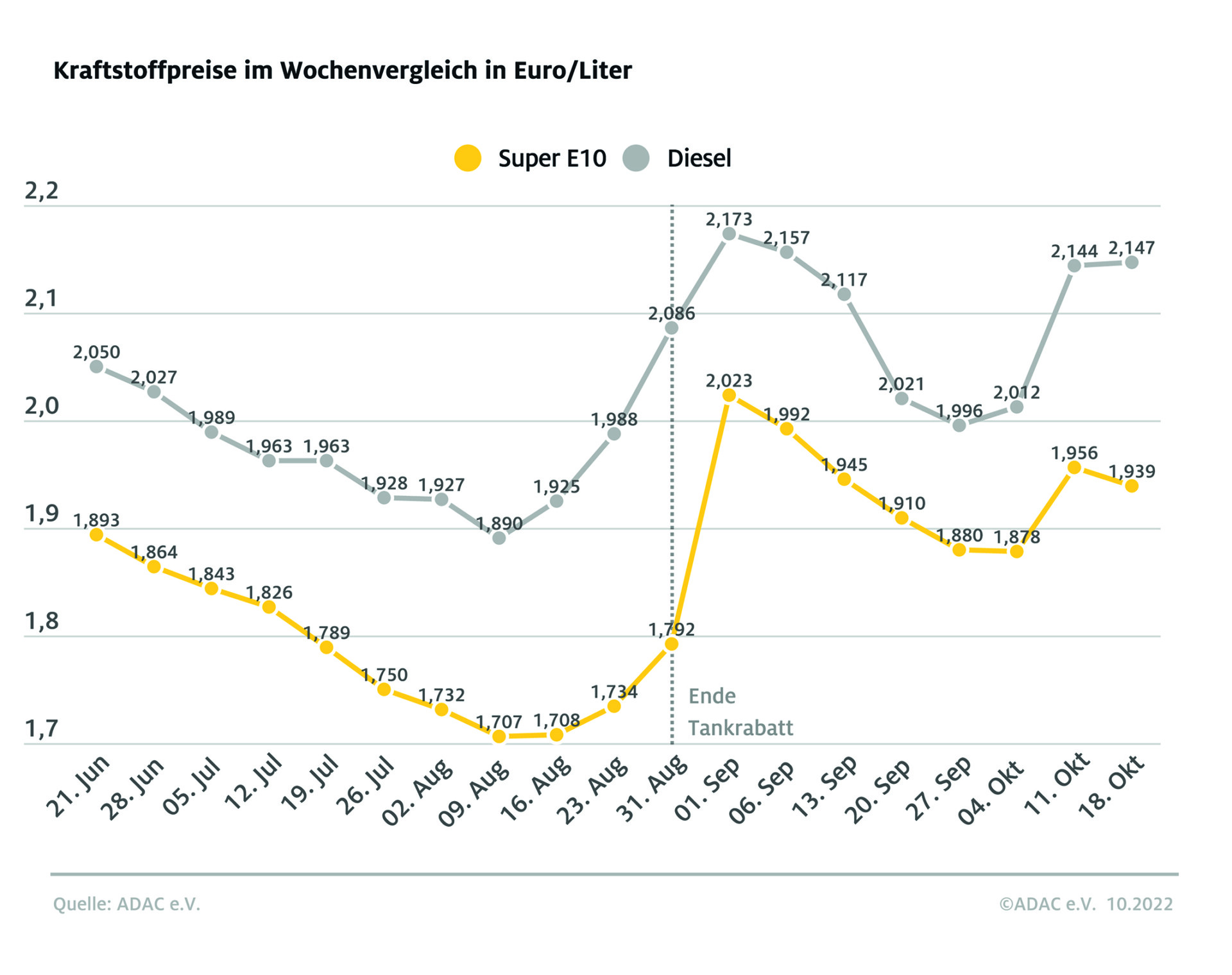Wie dramatisch überteuert Diesel aber derzeit ist, lässt sich auch anhand der unterschiedlich starken Besteuerung ablesen: Auf einen Liter Diesel entfallen gut 20 Cent weniger Energie- und Mehrwertsteuer, tatsächlich kostet Diesel aber fast 21 Cent mehr als Super E10.