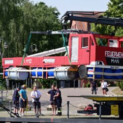 Schon kurz nach 8 Uhr starteten die Vorbereitungen für das Event: Da wurden die „Badewannen“ übers Wasser mit verschiedenen Booten zum Start geschleppt, da rückte das Unternehmen Setzkorn mit dem großen Abschlepper an, um das Gefährt der Feuerwehr per Kran ins Wasser zu hieven, und da wirbelten am Ufer ganz viele Freiwillige umher, um alles zu regeln.
