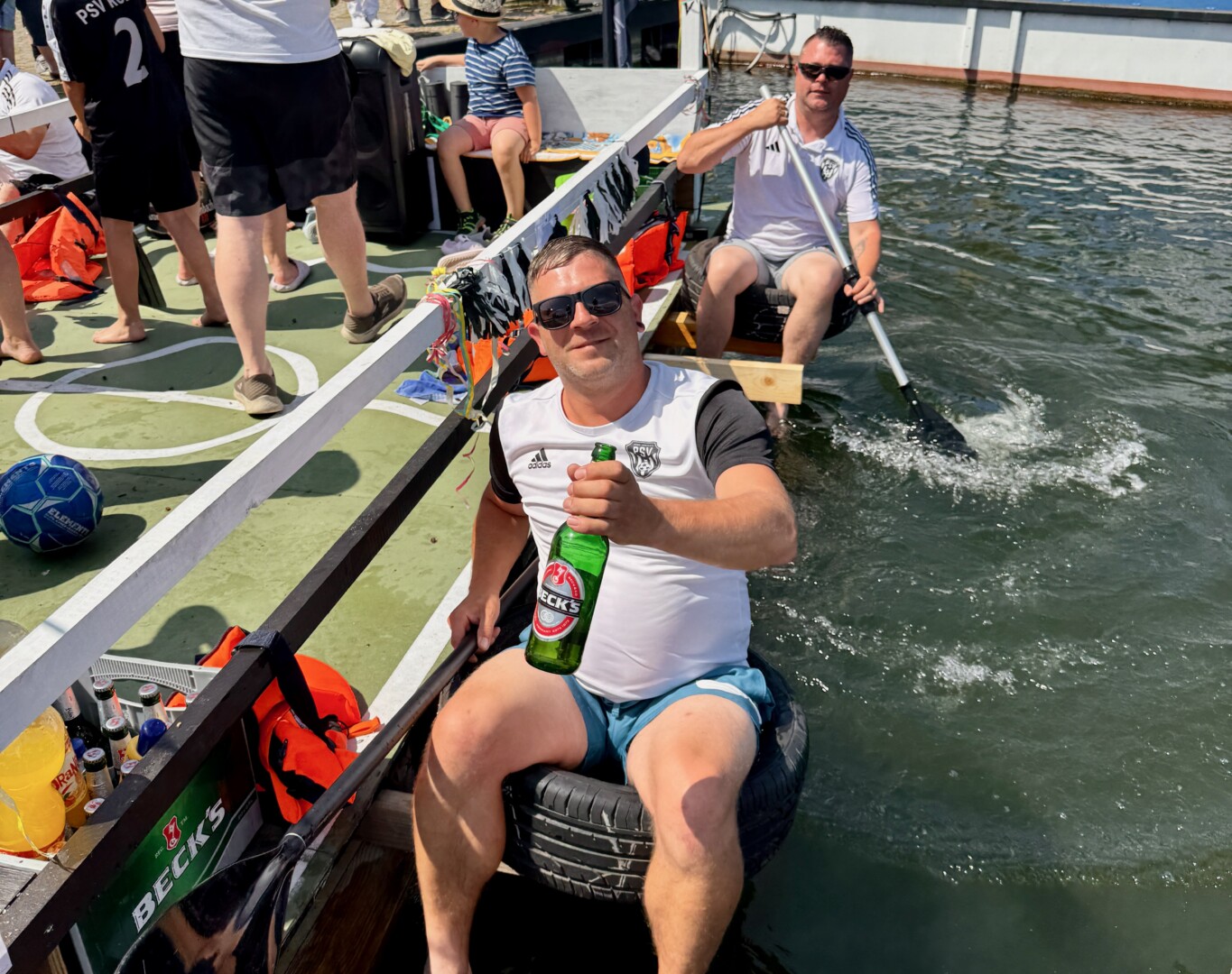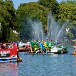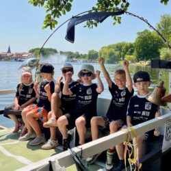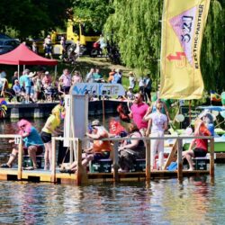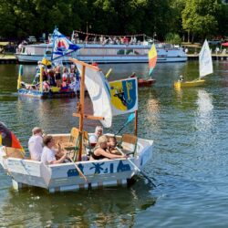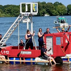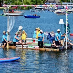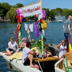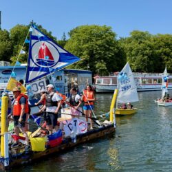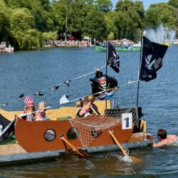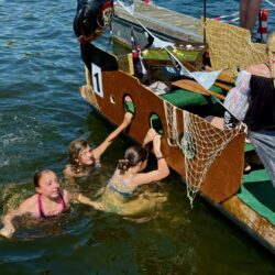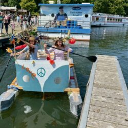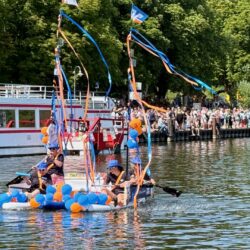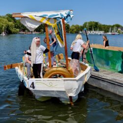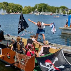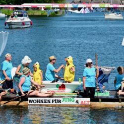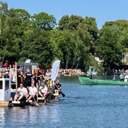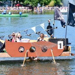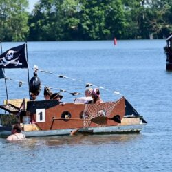 Ganz viel Applaus ernteten die „Müritzpiraten“ aus Ludorf. Sie starteten am Anfang und hatten einen besonderen Motor am Heck – Mama Sarina schwamm die gesamte Strecke mit und schob die liebevoll gestaltete „Badewanne“ mit Schatzkiste und Co. die gesamte Strecke an und schließlich ins Ziel. Dafür gab es einen Sonderpreis – verdient!