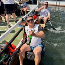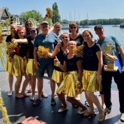 Doch nicht nur die Feuerwehr kam aufs Treppchen. Der Stimmungspokal ging an die „Young Golden Girls“, die mit Glitzer, Gesang und Tanz über die Wellen gleiteten. Zur Truppe gehörte auch die Partnerin von Bürgermeister Matthias Radtke. Hat ihr aber nicht unbedingt Vorteile gebracht, denn Anna landete mehrfach in der Müritz, hatte aber viel Spaß dabei.
