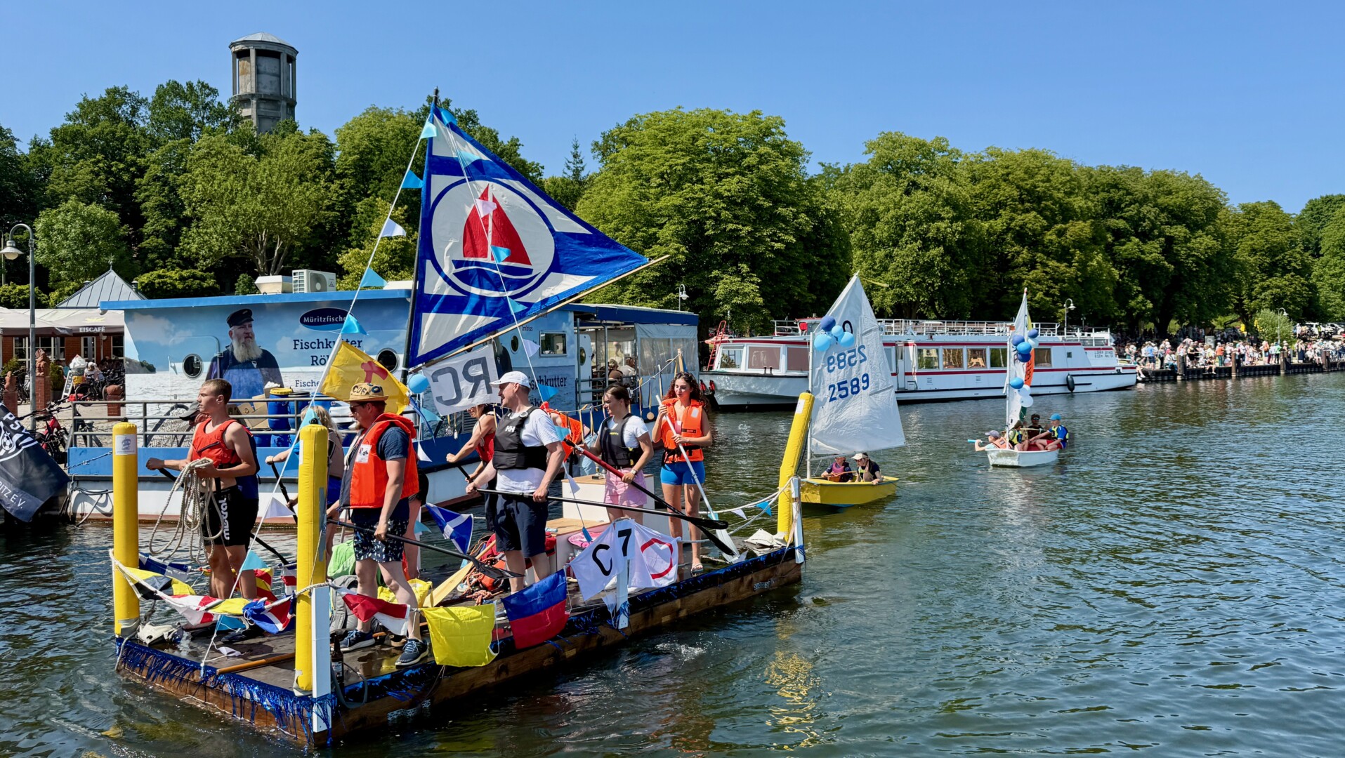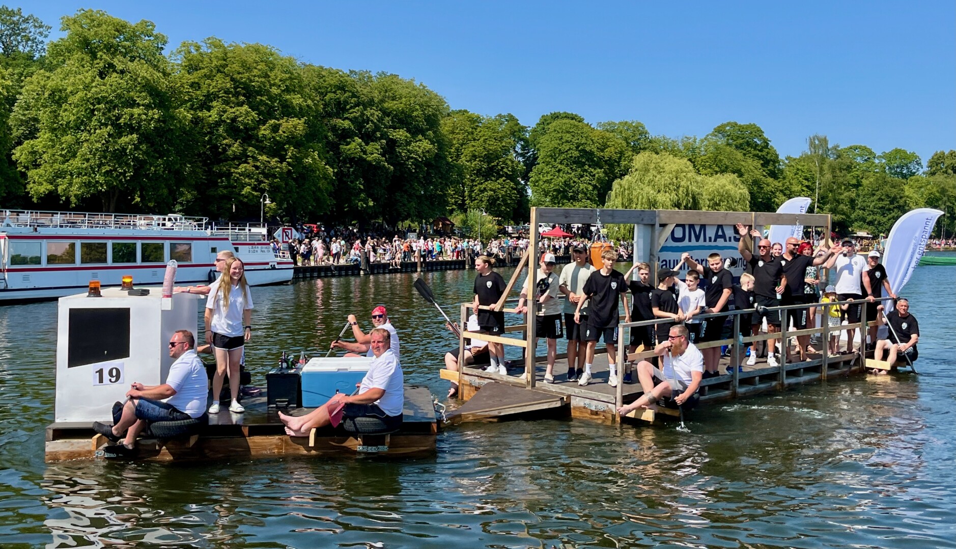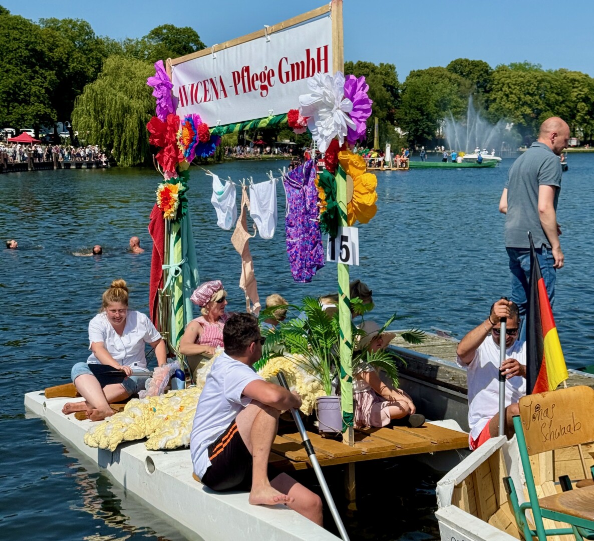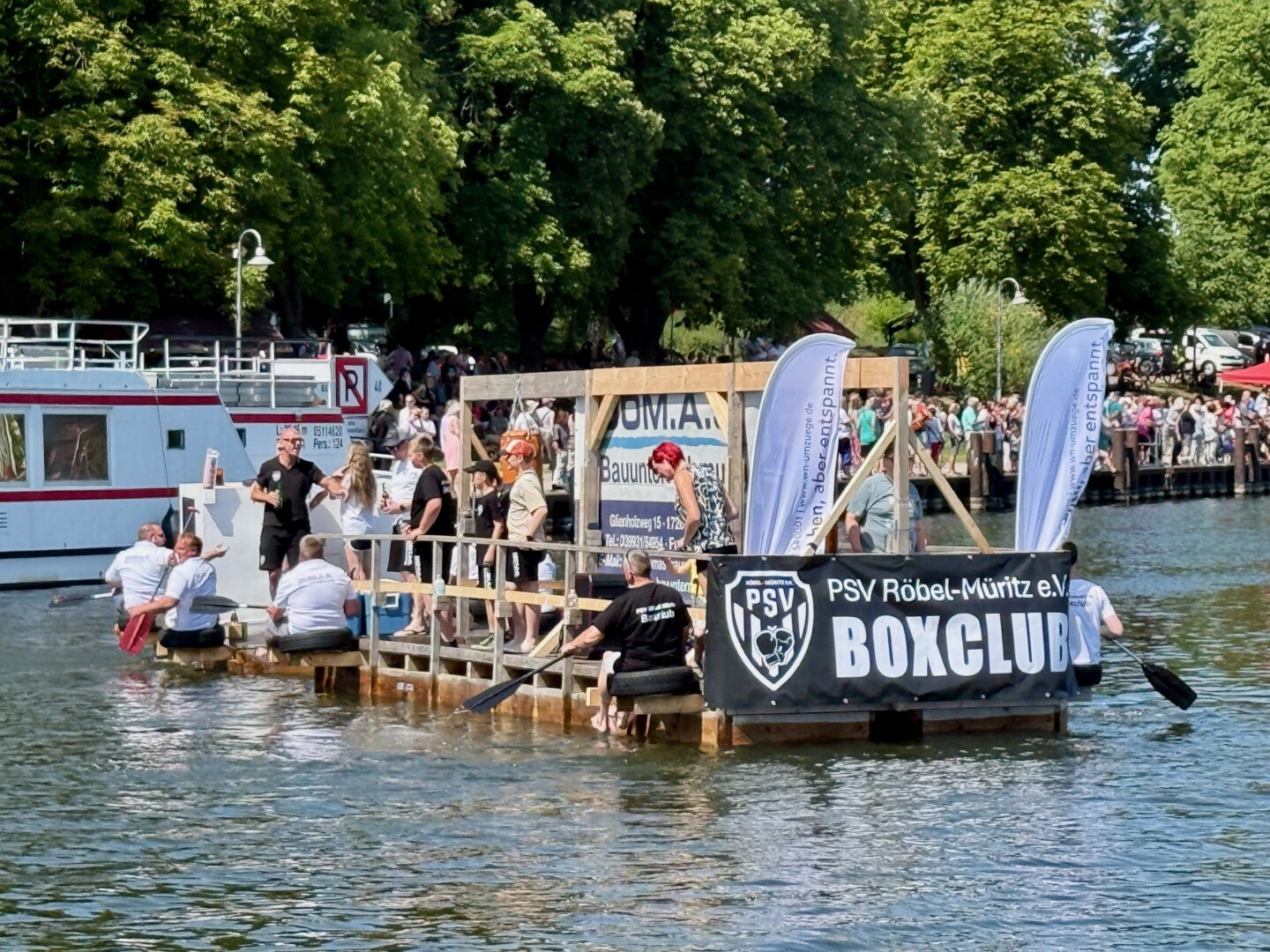 Ganz viel Applaus ernteten die „Müritzpiraten“ aus Ludorf. Sie starteten am Anfang und hatten einen besonderen Motor am Heck – Mama Sarina schwamm die gesamte Strecke mit und schob die liebevoll gestaltete „Badewanne“ mit Schatzkiste und Co. die gesamte Strecke an und schließlich ins Ziel. Dafür gab es einen Sonderpreis – verdient!