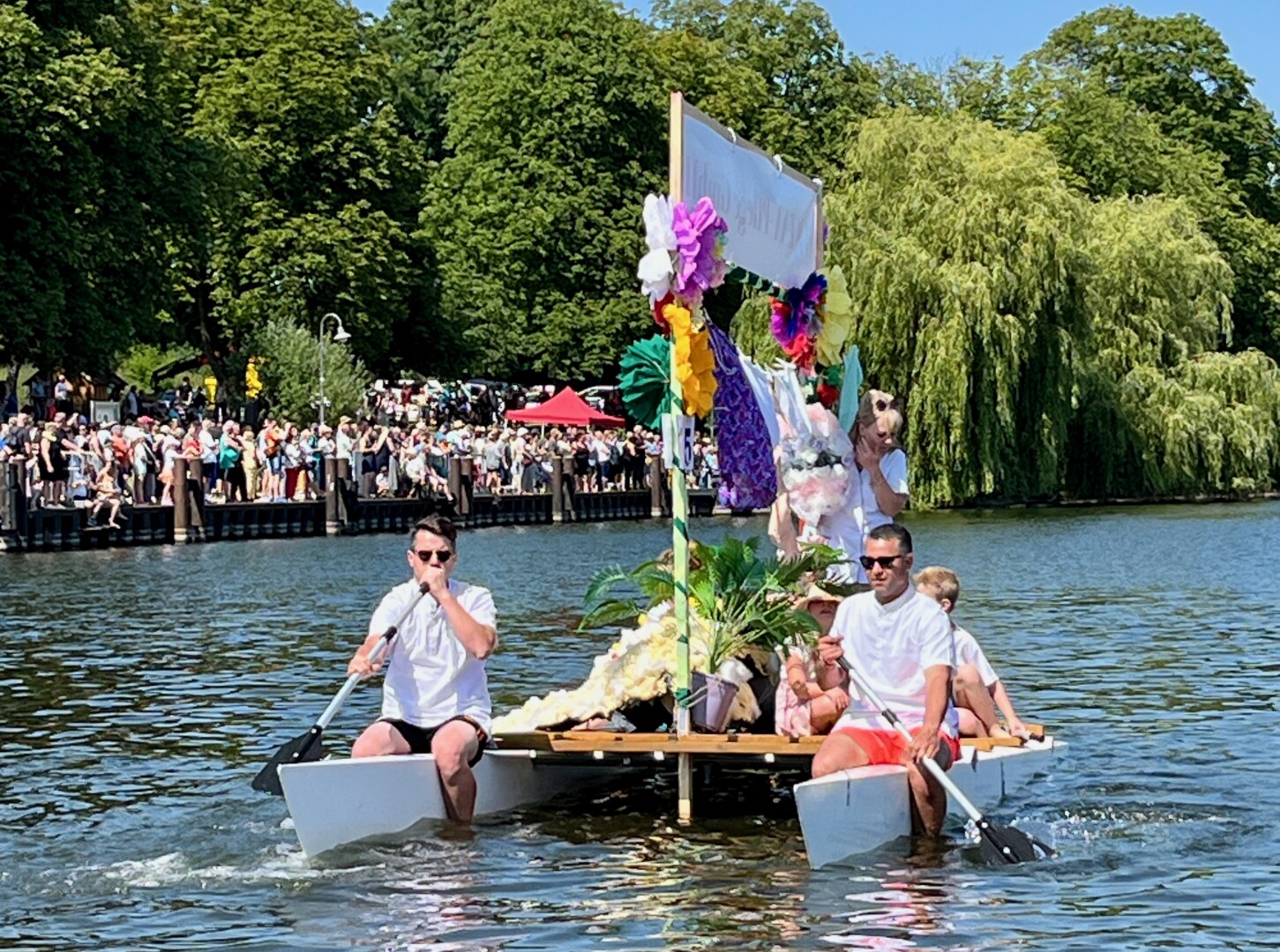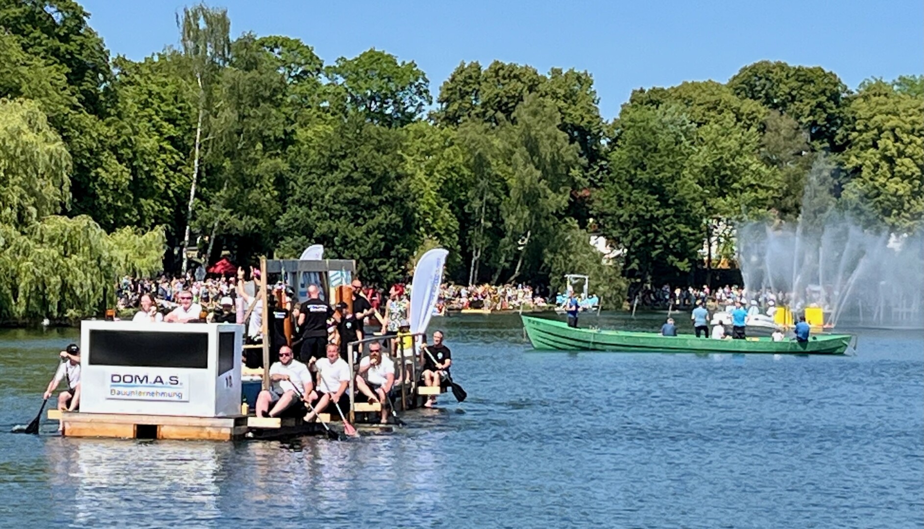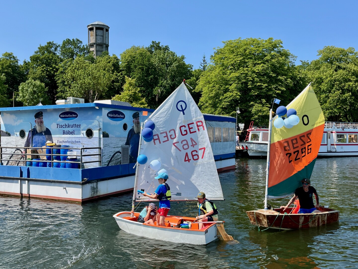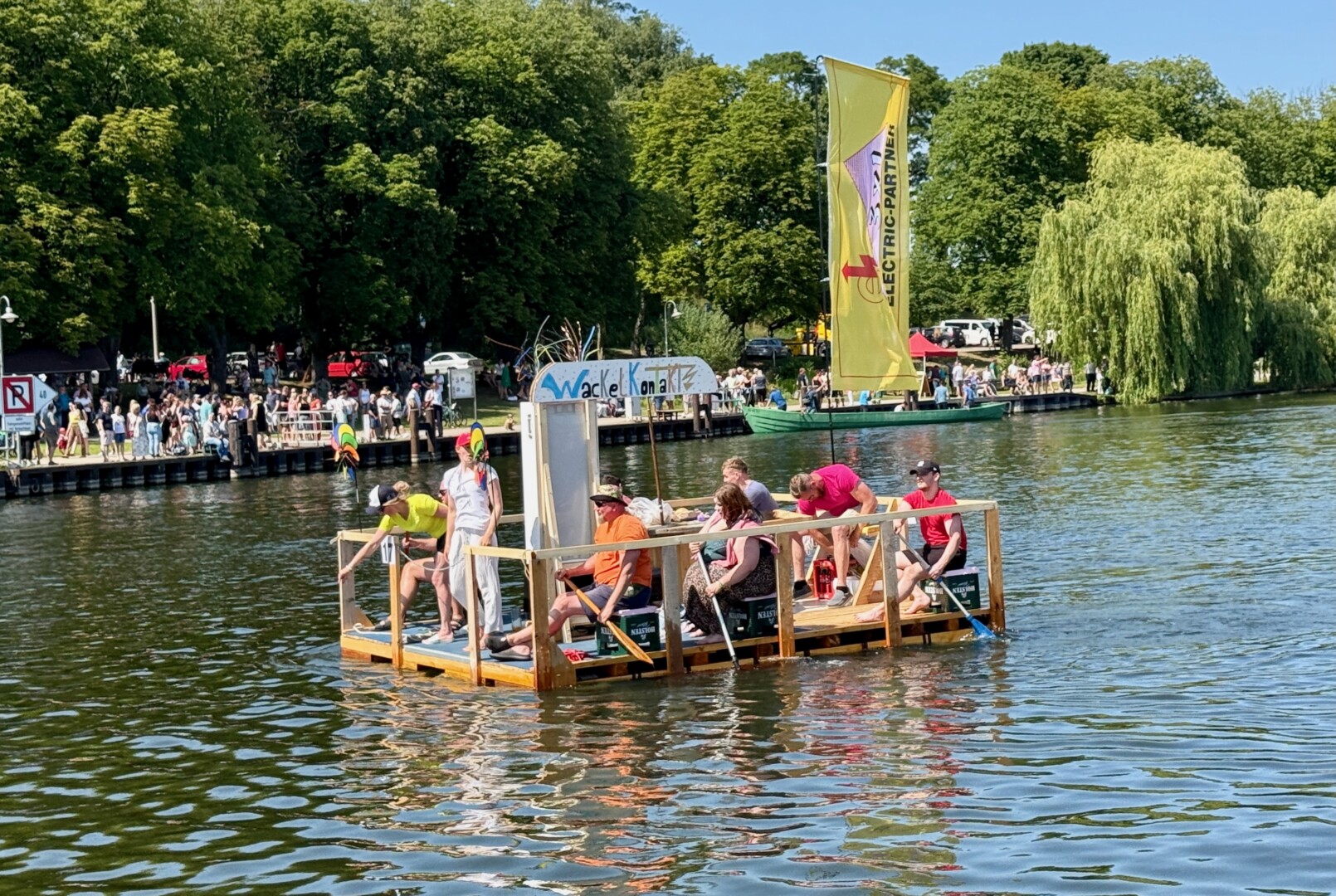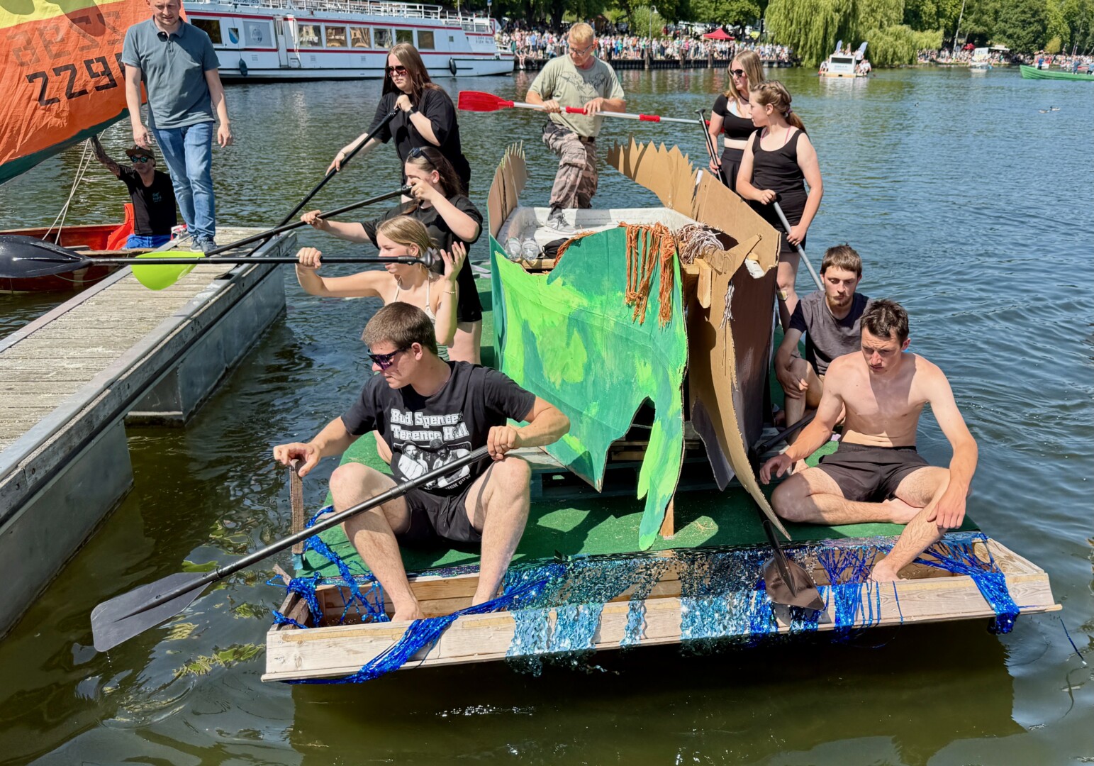 Ganz viel Applaus ernteten die „Müritzpiraten“ aus Ludorf. Sie starteten am Anfang und hatten einen besonderen Motor am Heck – Mama Sarina schwamm die gesamte Strecke mit und schob die liebevoll gestaltete „Badewanne“ mit Schatzkiste und Co. die gesamte Strecke an und schließlich ins Ziel. Dafür gab es einen Sonderpreis – verdient!
