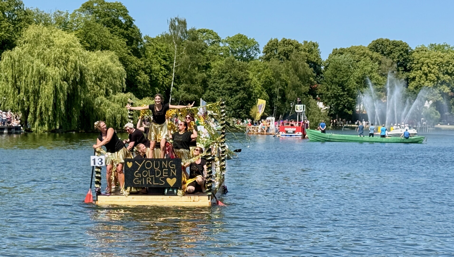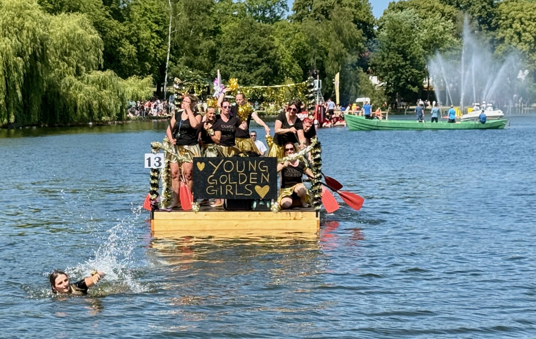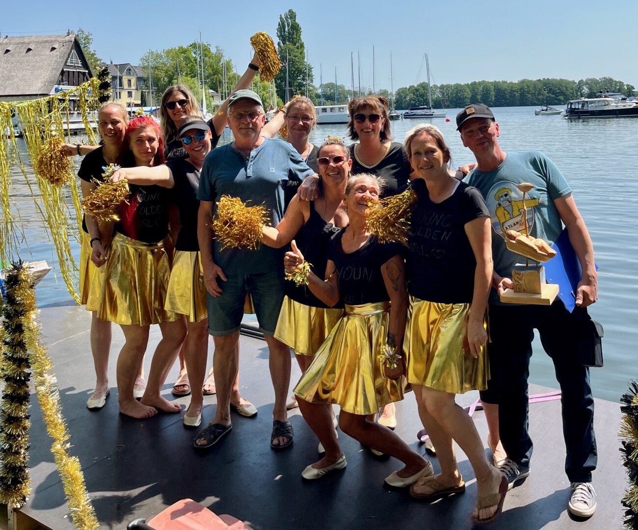 Doch nicht nur die Feuerwehr kam aufs Treppchen. Der Stimmungspokal ging an die „Young Golden Girls“, die mit Glitzer, Gesang und Tanz über die Wellen gleiteten. Zur Truppe gehörte auch die Partnerin von Bürgermeister Matthias Radtke. Hat ihr aber nicht unbedingt Vorteile gebracht, denn Anna landete mehrfach in der Müritz, hatte aber viel Spaß dabei.