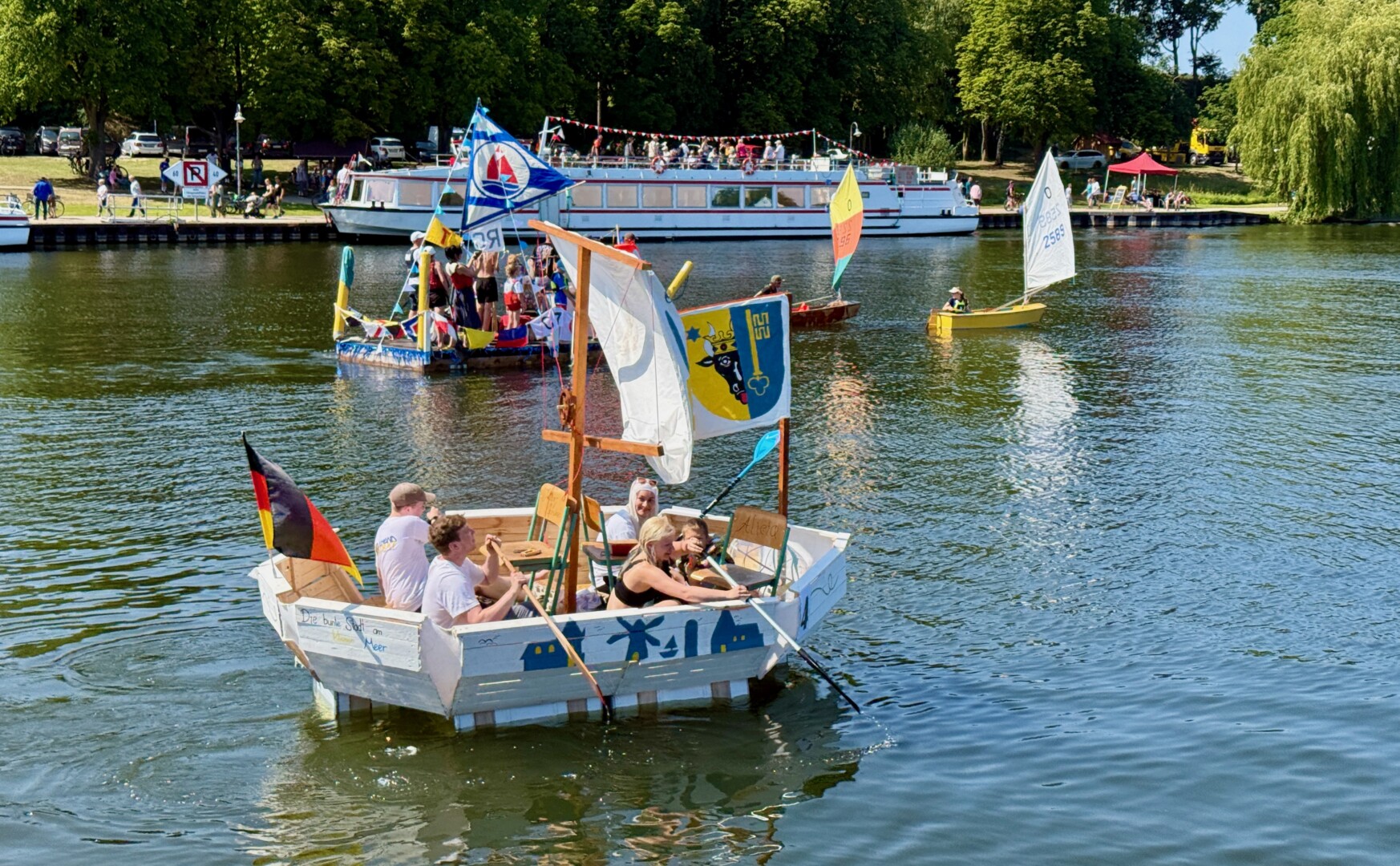 Und, wir nehmen es einmal vorweg: Den Gesamtsieg holte sich die Feuerwehr Röbel mit ihrer Drehleiter – ein mehr als verdienter Pokal, denn in dem Boot stecken wirklich viele Stunden Arbeit. Ohnehin haben alle Teilnehmer jede Menge Herzblut in ihre Gefährte gesteckt und ganz viel Liebe zum Detail.