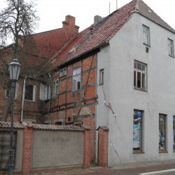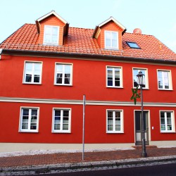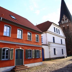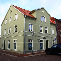Den Titel „Schönstes Haus 2013“ trägt nun die Predigerstraße 1, die historisch zur alten „Storchenschule“ gehört und die 2009 von Dürken Köppen gekauft wurde. Da eine Sanierung wegen schwerer Schäden unwirtschaftlich war, gab die Stadt ihre Zustimmung für einen Neubau. So entstand auf dem 200 Quadratmeter großen Grundstück das „Therapiehaus“, das in der Laudatio als „strahlender Edelstein“ bezeichnet wird. Die Bauherrin hat sich für ein sattes Rot und Bögen über den Fenstern entschieden, die das Haus „lächeln“ lassen. „Bei ‚Röbel genießt‘, der kulinarisch-literaischen Gemeinschaftsveranstaltung von Therapiehaus und Stadtbibliothek, wird ihr Garten zusammen mit dem Innenhof der Bibliothek zu einem beliebten Treffpunkt. Mit ihrem Können und ihrem Einsatz bereichert die Hausherrin hier zusätzlich Röbels Kulturleben“, meinen Stadt und Stadtvertretung.