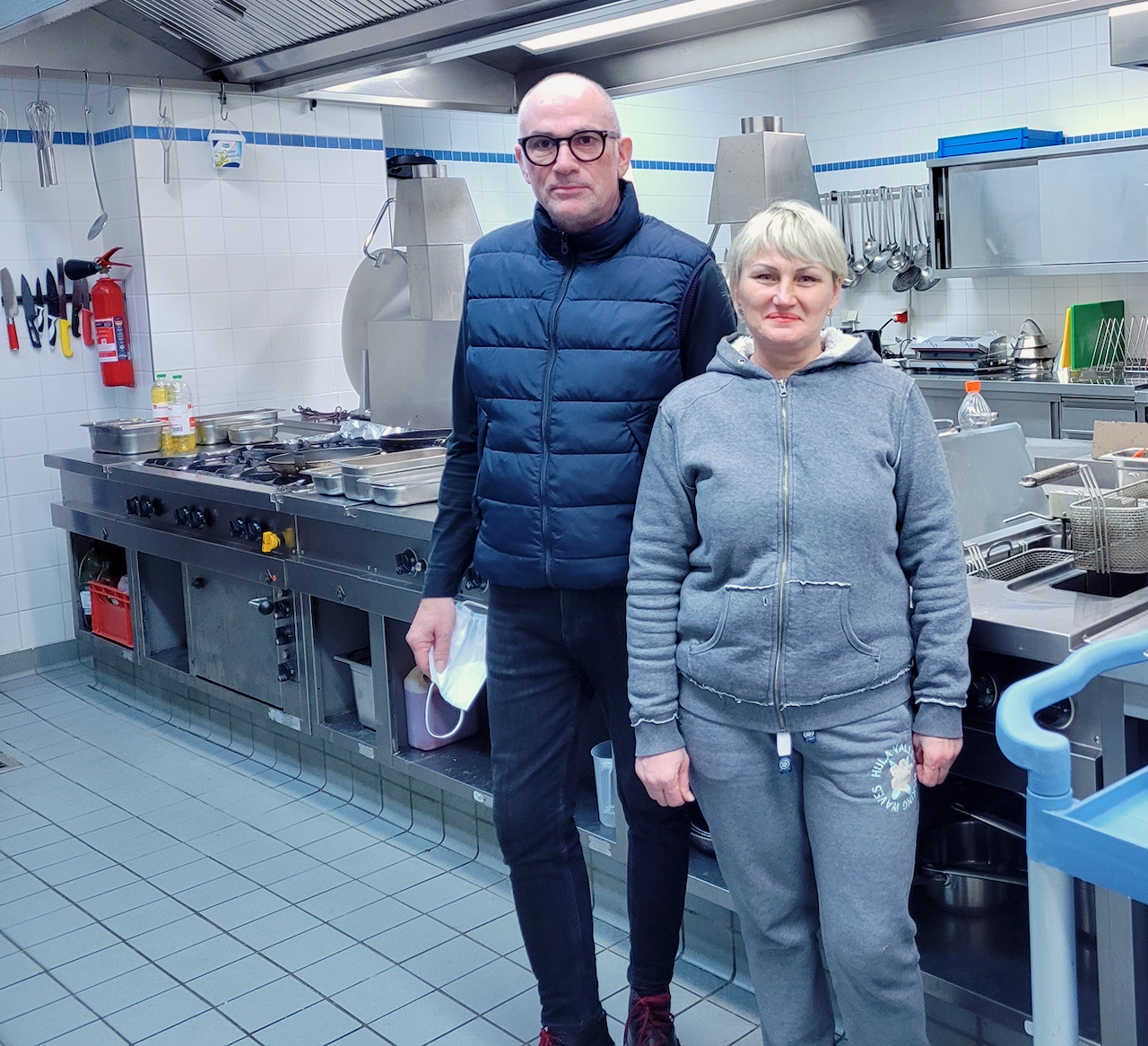 In der Küche übernahm die aus Charkiv stammende Natascha Mostovenko (47) die Position der Küchenhilfe. Die Köche waren zunächst skeptisch, ob sie sich mit Natascha, die weder Deutsch noch Englisch sprach, verständigen können. Zwar hatten sie in der Spüle bereits gut Erfahrung mit einer ukrainischen Mitarbeiterin gemacht. Doch wie sollten Sie Natascha ohne direkte Verständigungsmöglichkeiten erklären, wie die Käseplatten auszusehen haben oder wie die Karotten für die Vorspeise geschnitten werden müssen?