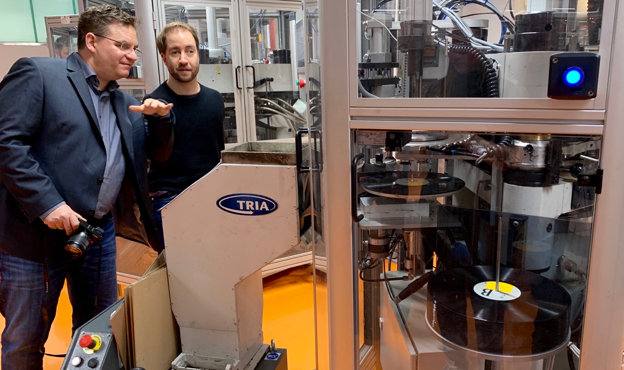 Im CD-Werk ließ sich der sehr positiv wirkende junge Mann von Petra Funk, Assistentin der Geschäftsführung, ganz genau erklären, wie seine Musik in die Rille kommt. Im so genannten Hörraum erfuhr er, wie die Mitarbeiter des Unternehmens feststellen, ob die Platten tiptop in Ordnung sind und hörte dort auch zum allerersten Mal seine im Herbst vergangenen Jahres aufgenommene Musik.
