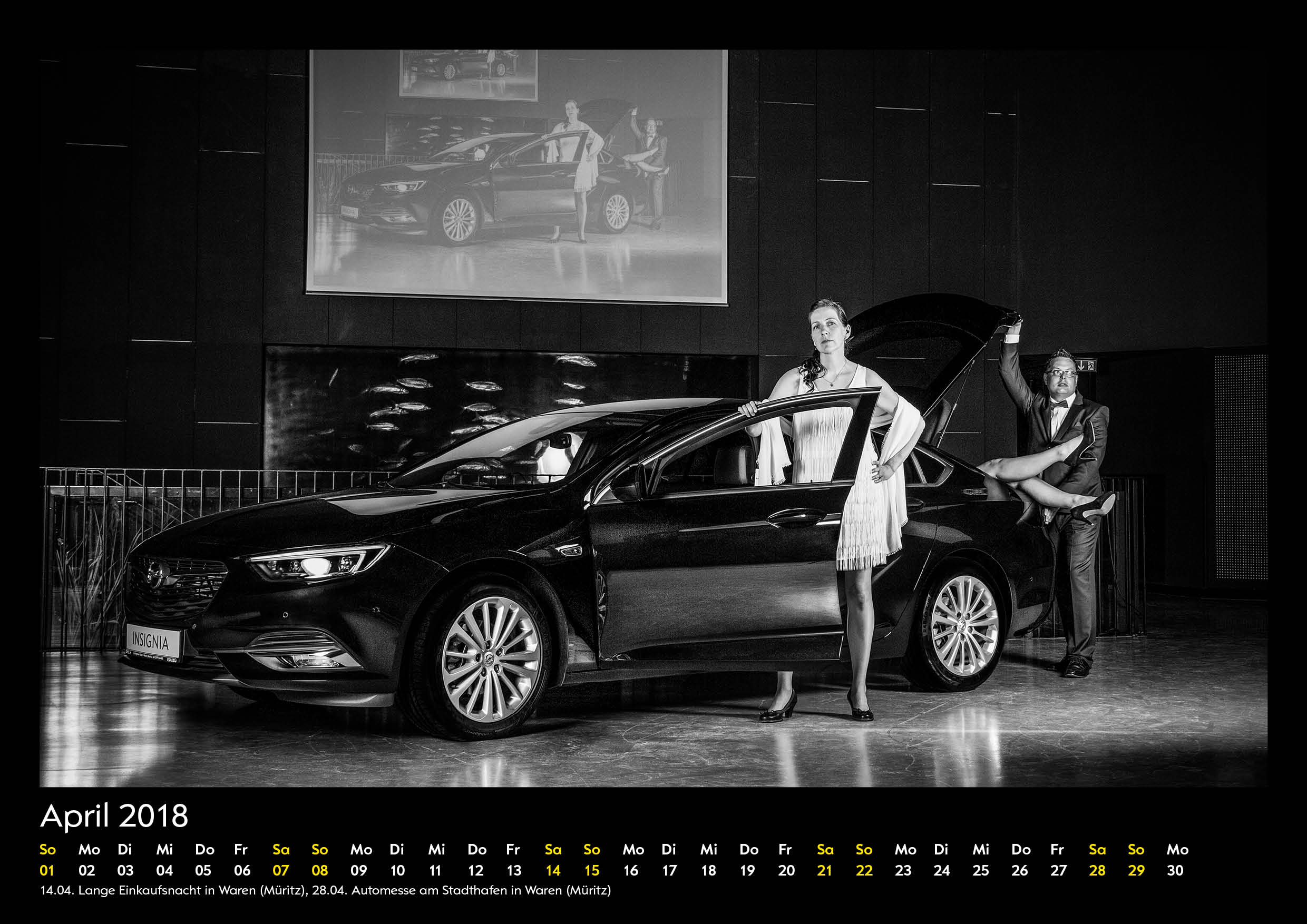 In Zusammenarbeit mit den Schülern des Fotoprojektes des Schlossgymnasiums Torgelow und mit Modepartner Schmidt in Malchow und Waren sind wirklich preisverdächtige Bilder entstanden, die diesen Kalender zieren – aufgenommen an bekannten Orten unserer Region. Sogar mitten im Müritzeum stand ein Opel.