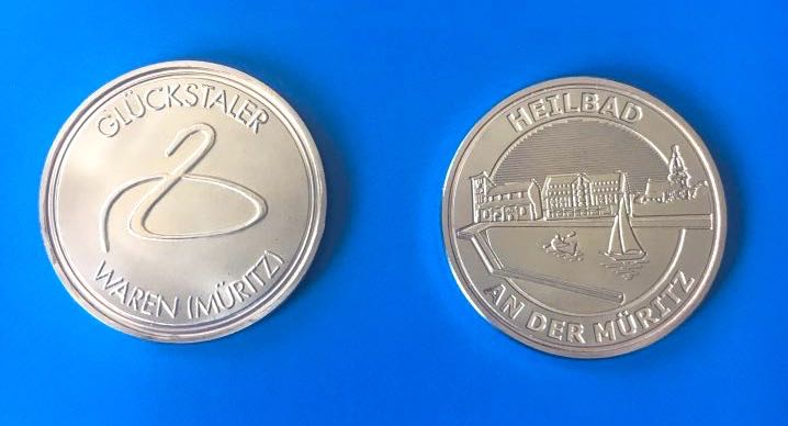 Der Münzpräger steht am Spielplatz „Lütten Ort“ am Warener Hafen. Preis: Zwei Euro das Stück.