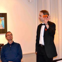 Mit klassischen Zaubertricks, bei dem ein Knoten im Seil wie von Zauberhand von oben nach unten wandert, das Seil an einer Stelle durchtrennt und dann scheinbar wieder zusammenwächst, über moderne Tricks mit Unterstützung einer Smartphone-App, bis hin zu Vorführungen, bei denen auch Gäste aus dem Publikum assistierten und selber Teil einer perfekten Illusion wurden, hat der Künstler das Publikum bestens unterhalten. Es wurde viel gelacht.