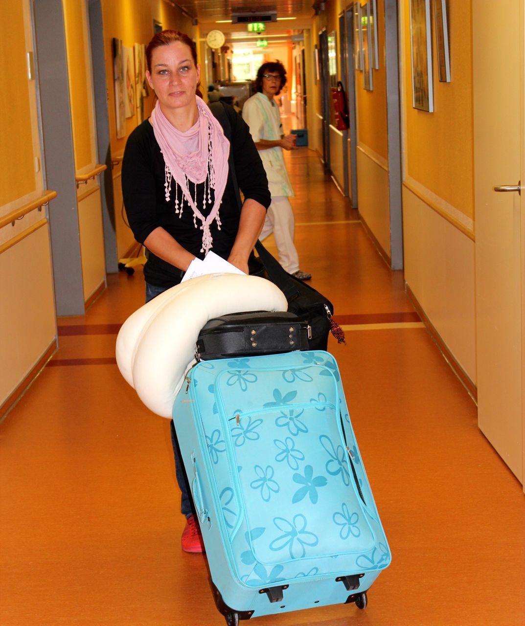 Nach rund 20 Minuten ist alles vorbei. „Manchmal brauche ich auch eine Stunde. Je nach dem, wie die Kleinen drauf sind. Wenn kleine Geschwister mit fotografiert werden, ist es hin und wieder etwas komplizierter“, erzählt die Babyfotografin. Dann packt sie Kissen, Plüschtier, Blumen und anderen „Dekosachen“ in ihren Roll-Koffer und geht über den Klinikflur ein paar Zimmer weiter. Dort wartet schon die nächste junge Mutti auf die sympathische Müritzerin.