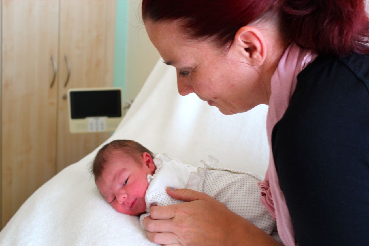 Kathleen Funk präsentiert Julia Gutzmann aus Röbel die Bilder von ihrem kleinen Luke.