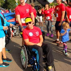 „Der Zuspruch an der Strecke von Zuschauern, aber auch von anderen Läufern war wirklich ganz toll. Das hat sowohl uns Läufern als auch Fritz geholfen, denn so eine Strecke im Rollstuhl war auch für ihn sehr anstrengend“, erzählt Trainer Thomas. Zweimal musste zwischendurch der Sportrollstuhl kurz repariert werden, und dennoch benötigte die Staffel für die gut 60 Kilometer nur 6,5 Stunden.