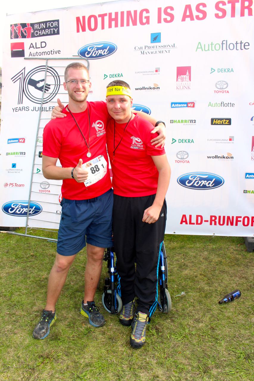 Es waren zweifellos die emotionalsten Momente beim diesjährigen Run für Charity: Mindestens fünf Staffeln sind für den 27 Jahre alten Fritz aus Röbel an den Start gegangen und haben für den jungen Mann so 2500 Euro erlaufen. Fritz selbst war auch mit auf der Strecke. Die Staffel von Sport- und Fitnesskaufmann Thomas Schernus-Adel hat den Röbeler, der sich seit einem schweren Autounfall vor fünf Jahren zurück ins Leben kämpft, im Rollstuhl gut 30 Kilometer geschoben.